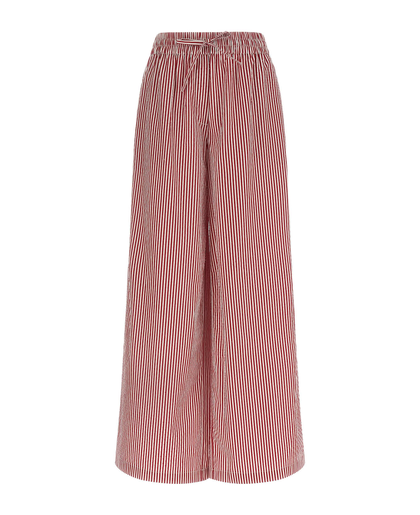 'Cashine' striped cotton poplin pants with all-over rhinestones, wide straight leg, drawstring elastic waistband, pockets.