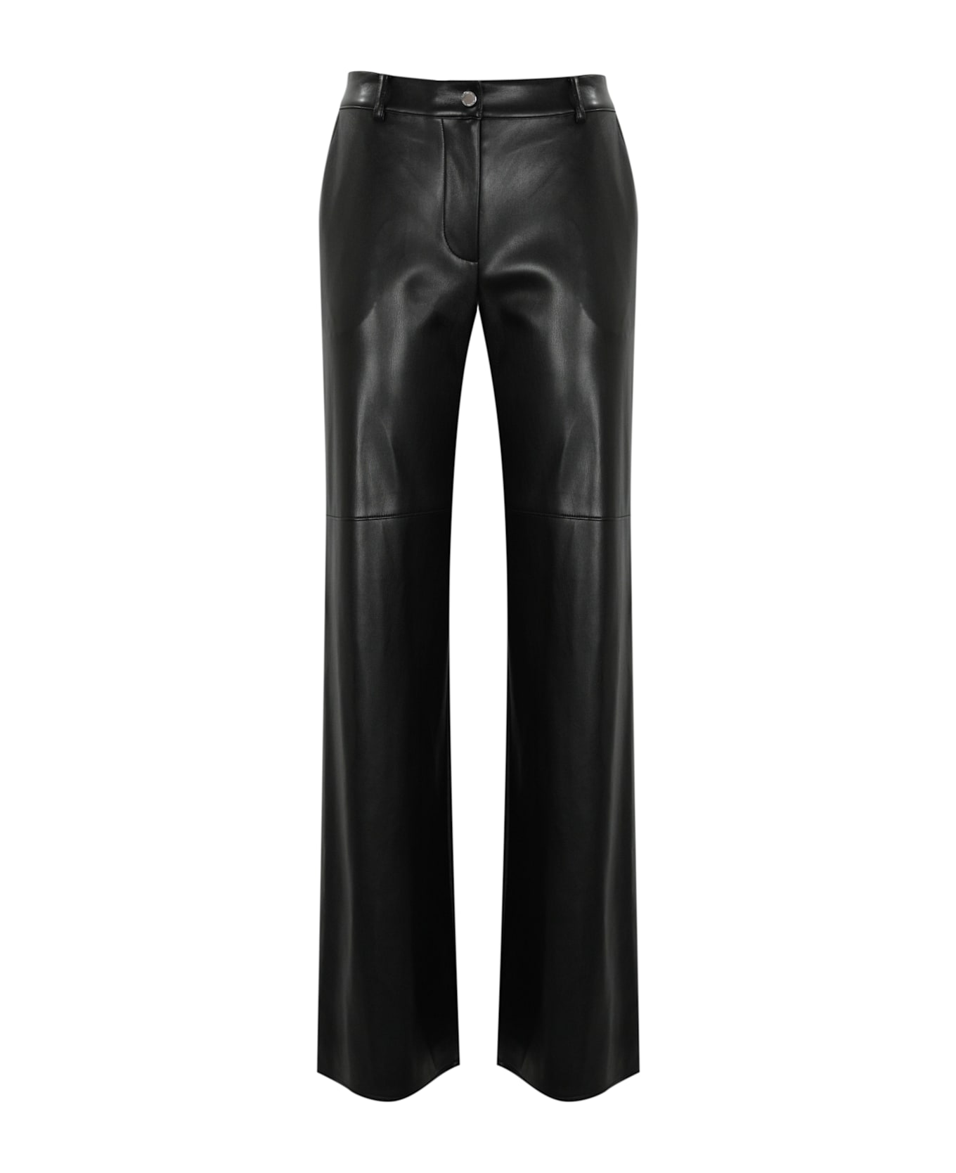 women's leather effect trousers: leather effect coated fabric zip and button closure belt loops side pockets wide leg regular fit composition: 100% polyurethane lining: 100% polyester