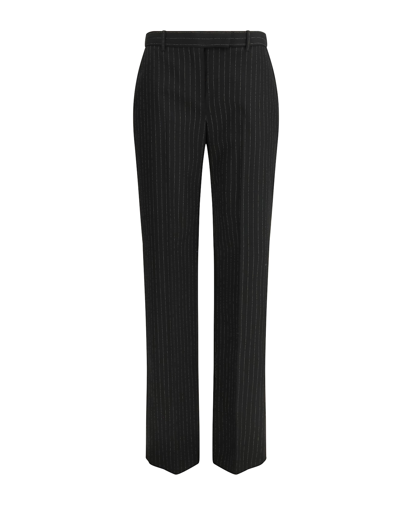 The pinstriped tailored trousers by alexander mcqueen convey a sharp, contemporary elegance where classic tailoring meets modern femininity. cut in a regular fit with a medium-rise waist, they offer a balanced silhouette enhanced by the refined pinstripe pattern. side pockets and rear welt pockets preserve a clean, structured line, while concealed zip and hook fastenings ensure a sleek finish. designed to fit true to size, these trousers are a sophisticated foundation for polished, confident looks.