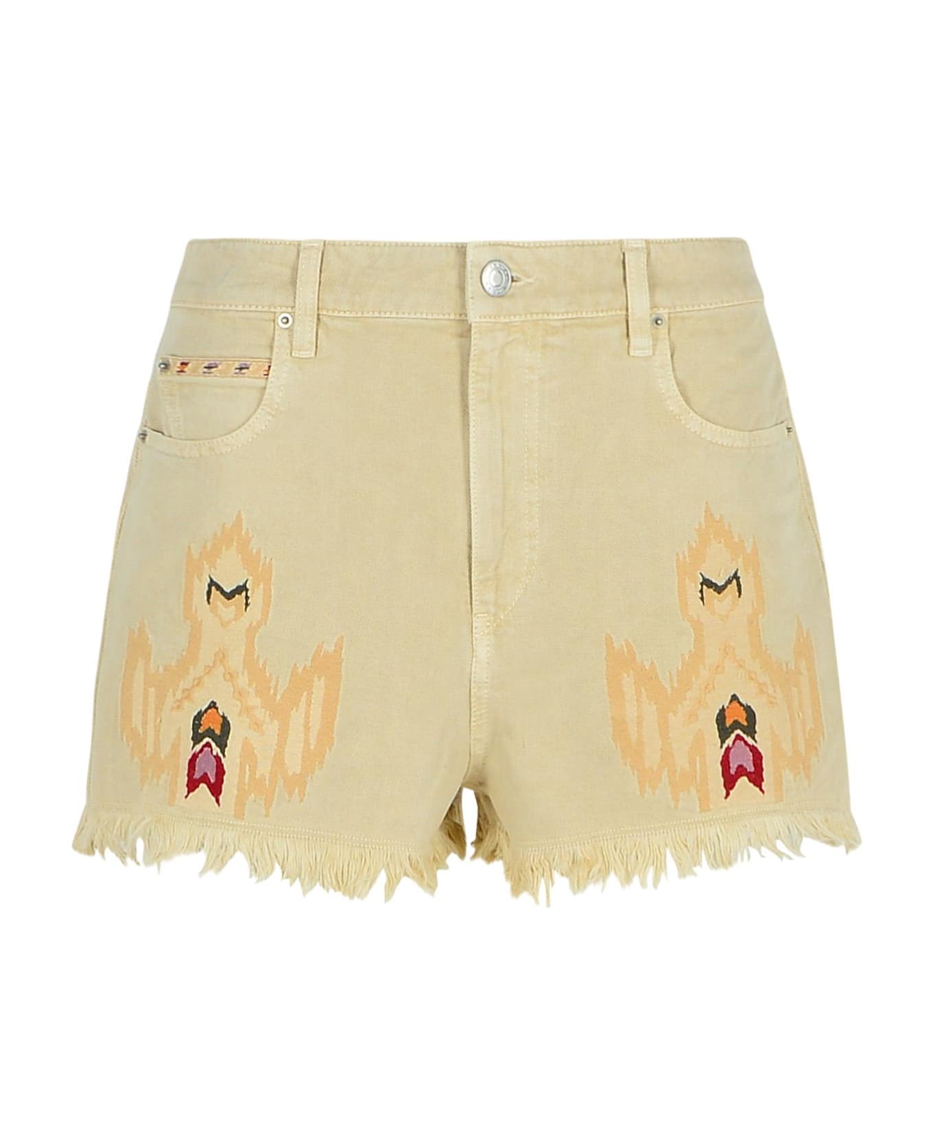 Belt loops, button and zip closure, five-pocket style, contrast embroidery, fringed hem, leather logo tag Composition: 80% cotton, 20% other fibers