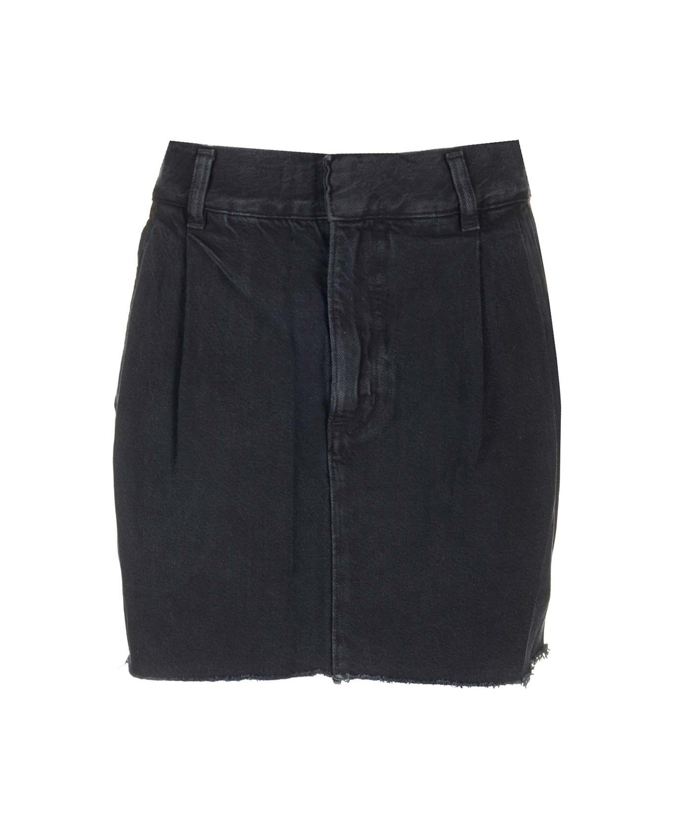 "Becker" mini skirt in black denim from Agolde, with hidden closure, front pleats and welt pockets on the back.