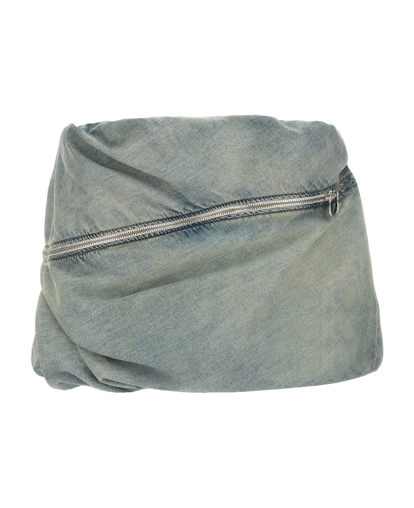 'De-Clot-S1' mini skirt in stretch denim with bleach effect wash and a light dirty finish, drawstring at the waist and on the hem to adjust the volume of the skirt, zip detail on the front and back. Composition: 98% cotton, 2% elastane