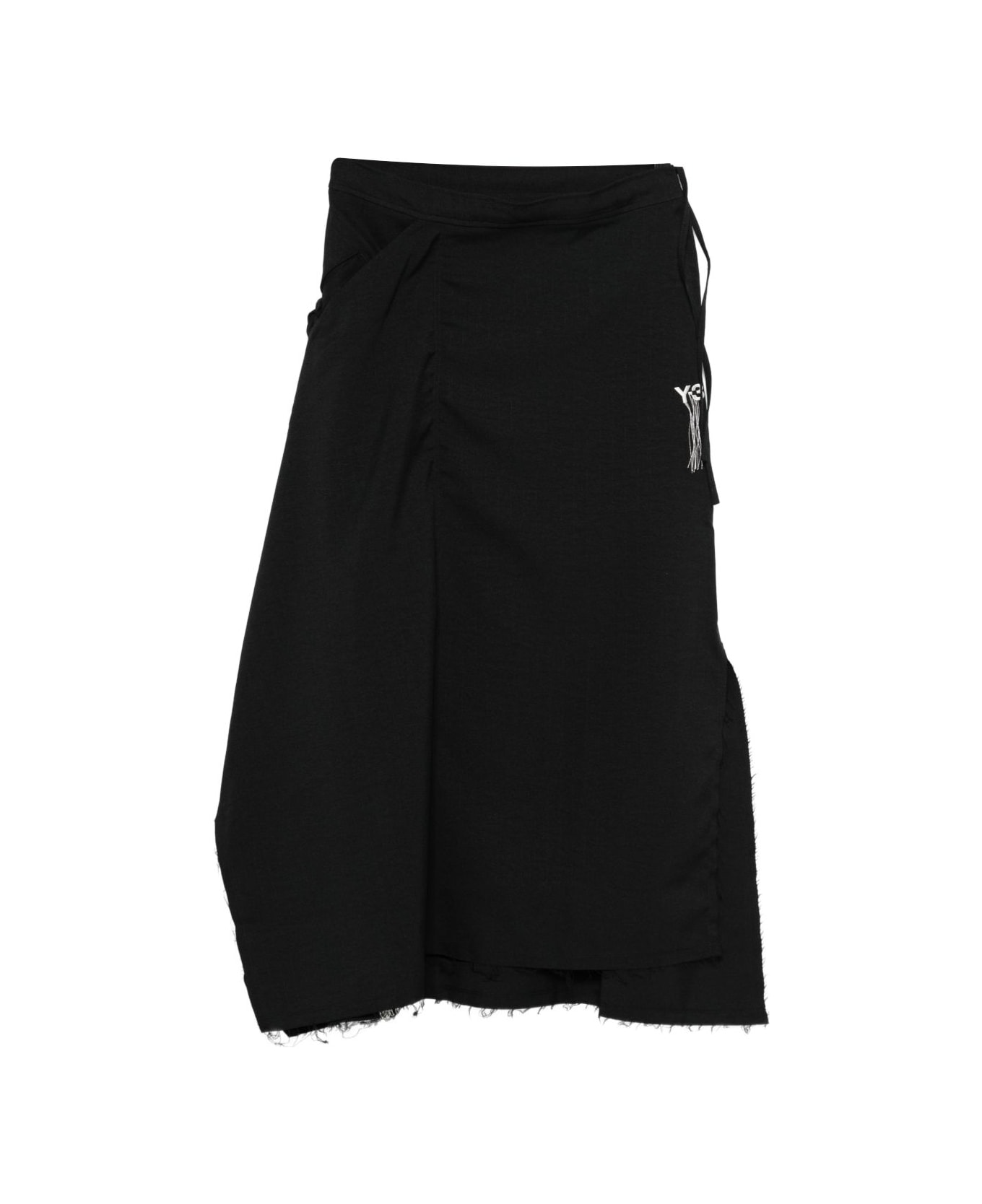 black raw-hem wrap design tie fastening logo embroidered high-waisted