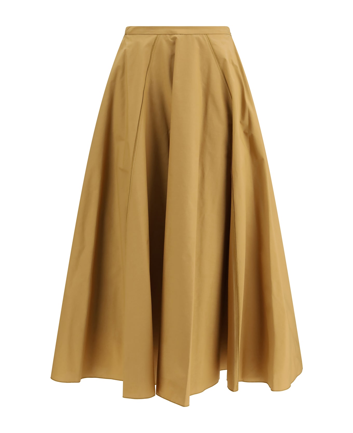 The poplin skirt by forte forte embodies effortless elegance through its paneled construction with topstitching, designed to create a flared, beautifully voluminous silhouette. the lightweight fabric moves sensually with every step, enhancing the skirt s fluid and expressive character. an elasticated back ensures comfort and ease of wear, while the side zip adds a clean, understated finish, making this piece ideal for refined everyday dressing.