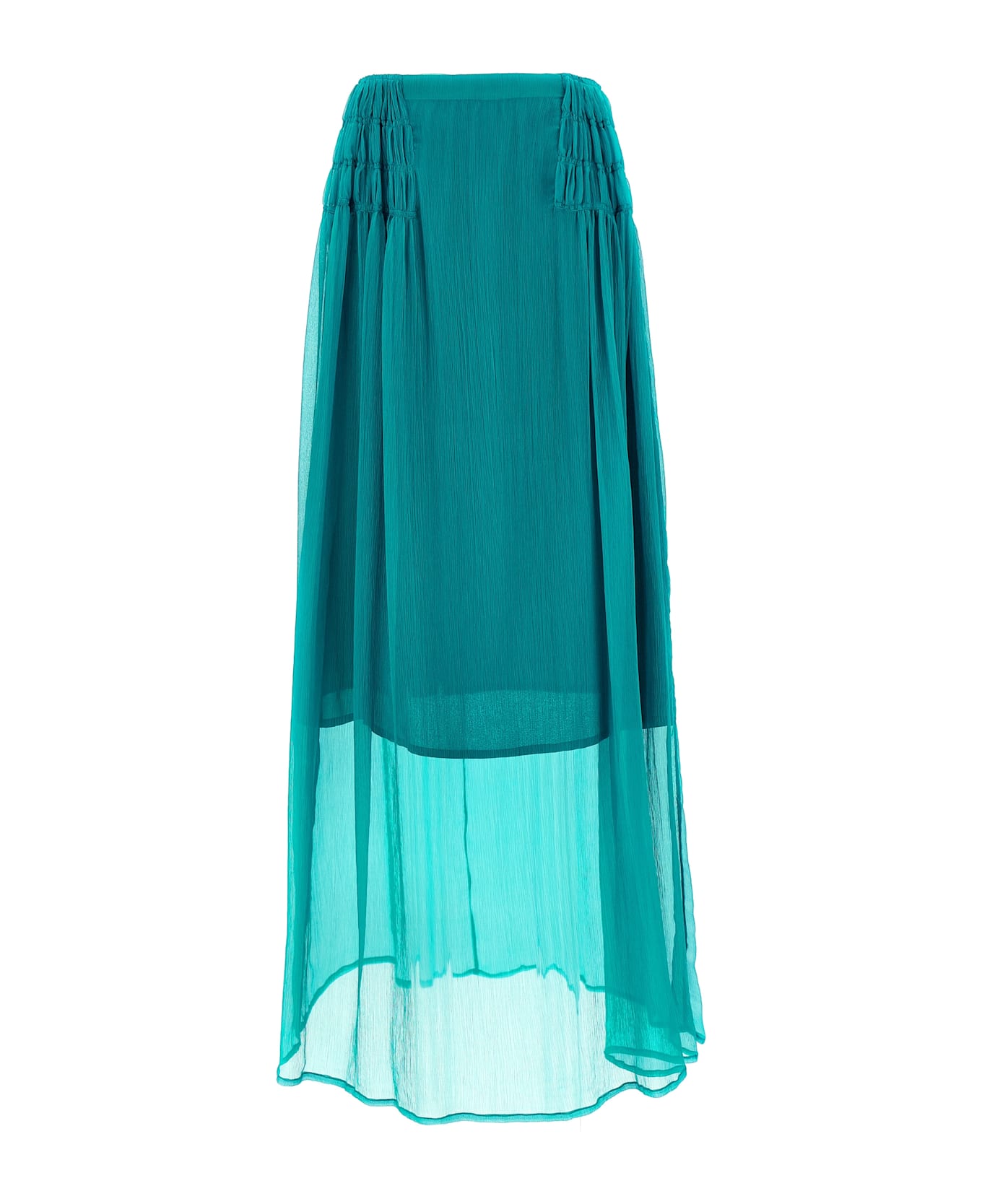 Long 'Scarlett' skirt in light crinkled silk, smock stitching on the sides, flared silhouette, underskirt, back zip closure.