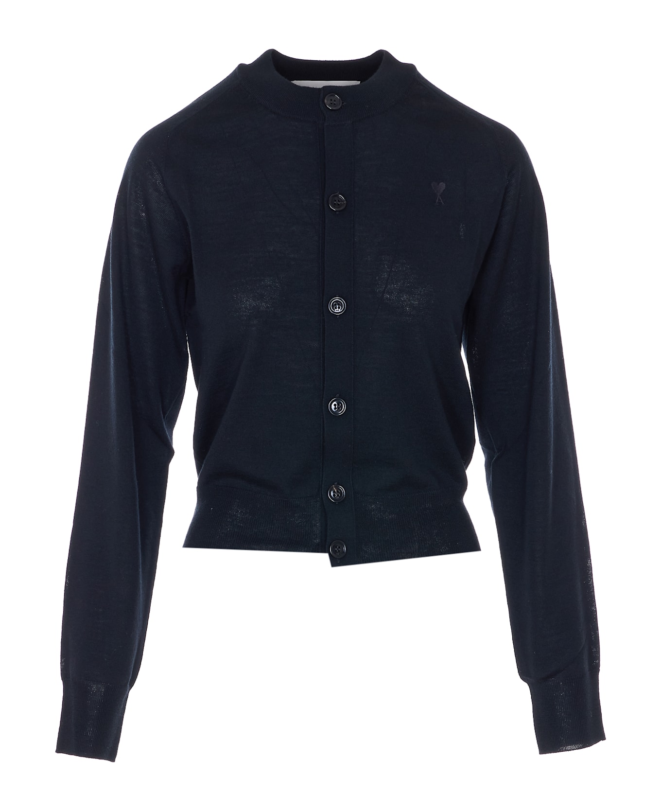 Ami - Alexandre Mattiussi black cardigan with frontal buttons closure, crewneck, long sleeves Composition: 100% Virgin Wool