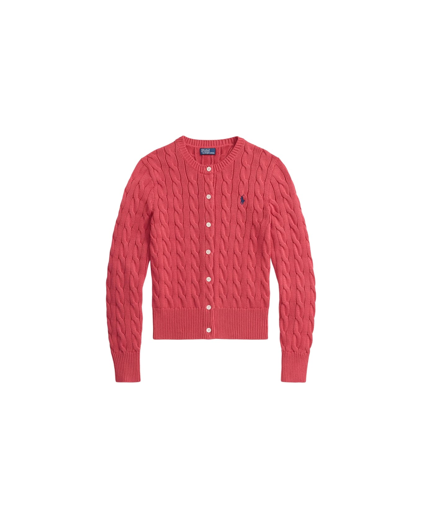 red cable knit long sleeves button fastening ribbed hem logo detailing