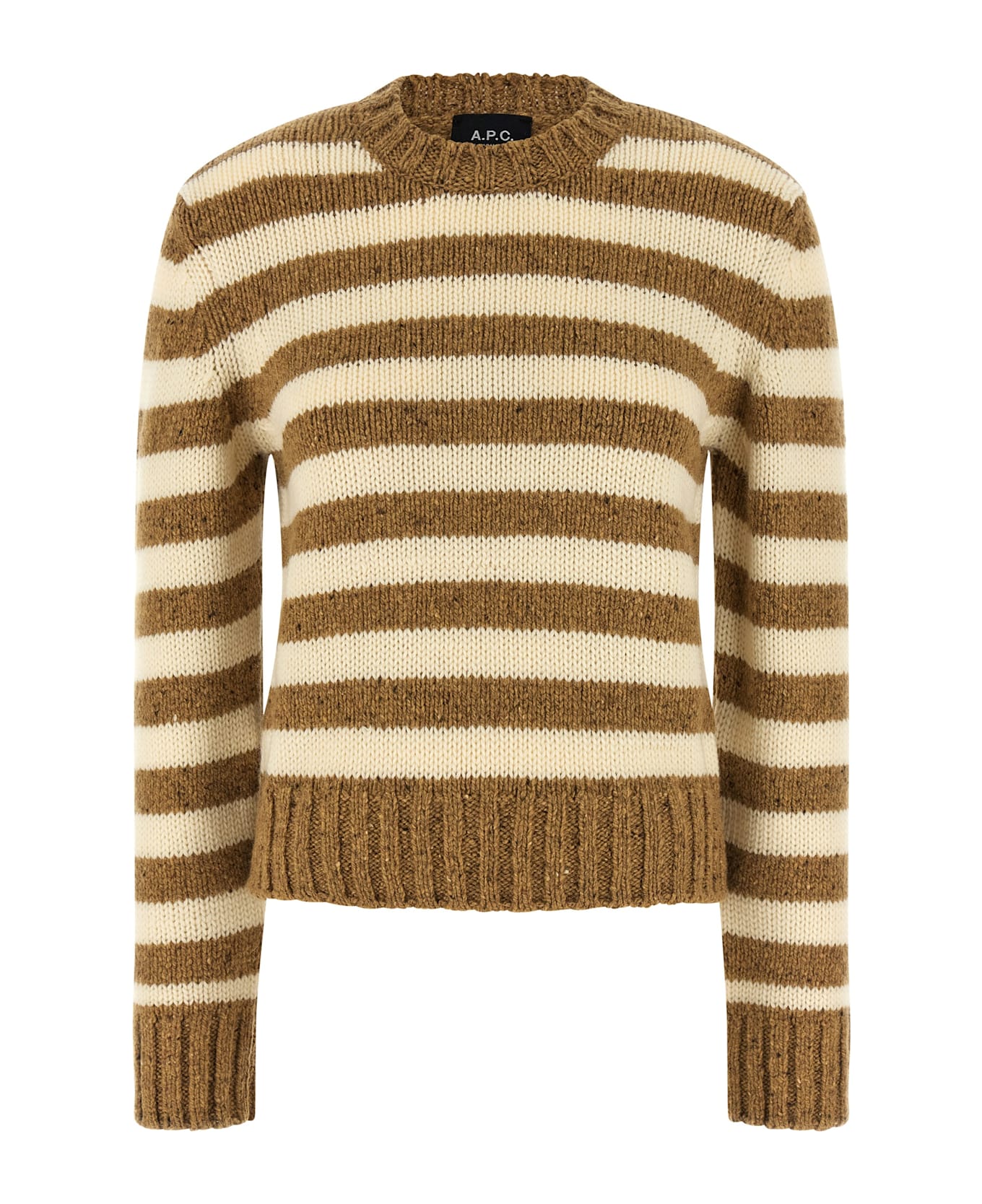 Knitted striped virgin wool sweater, crew neck, long cuffed sleeves.