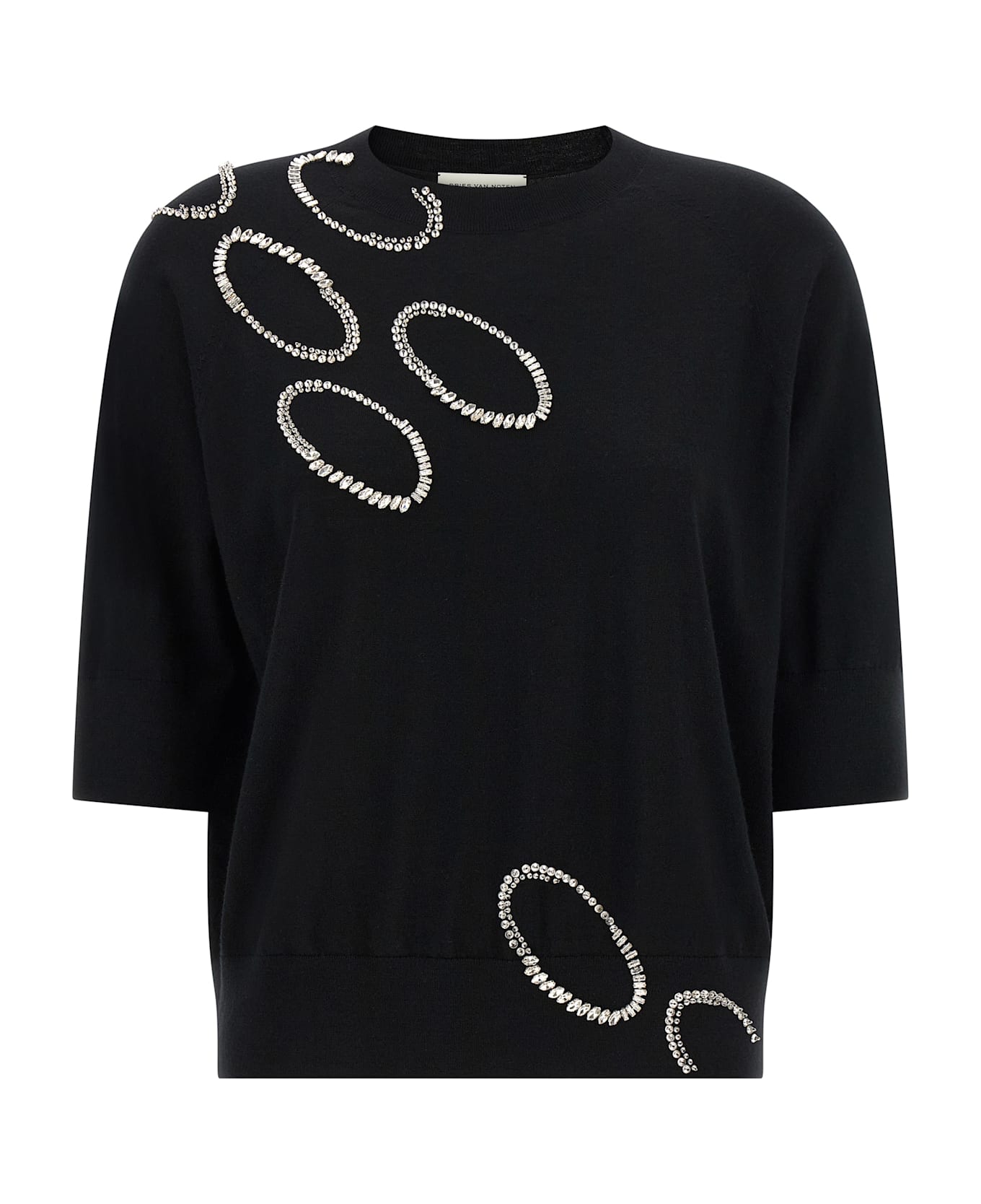 'Tuan' fine wool sweater, crew neck, embroidery with 'Oversized Ellipses' pattern in sequins and crystals, short sleeves, ribbed trims.