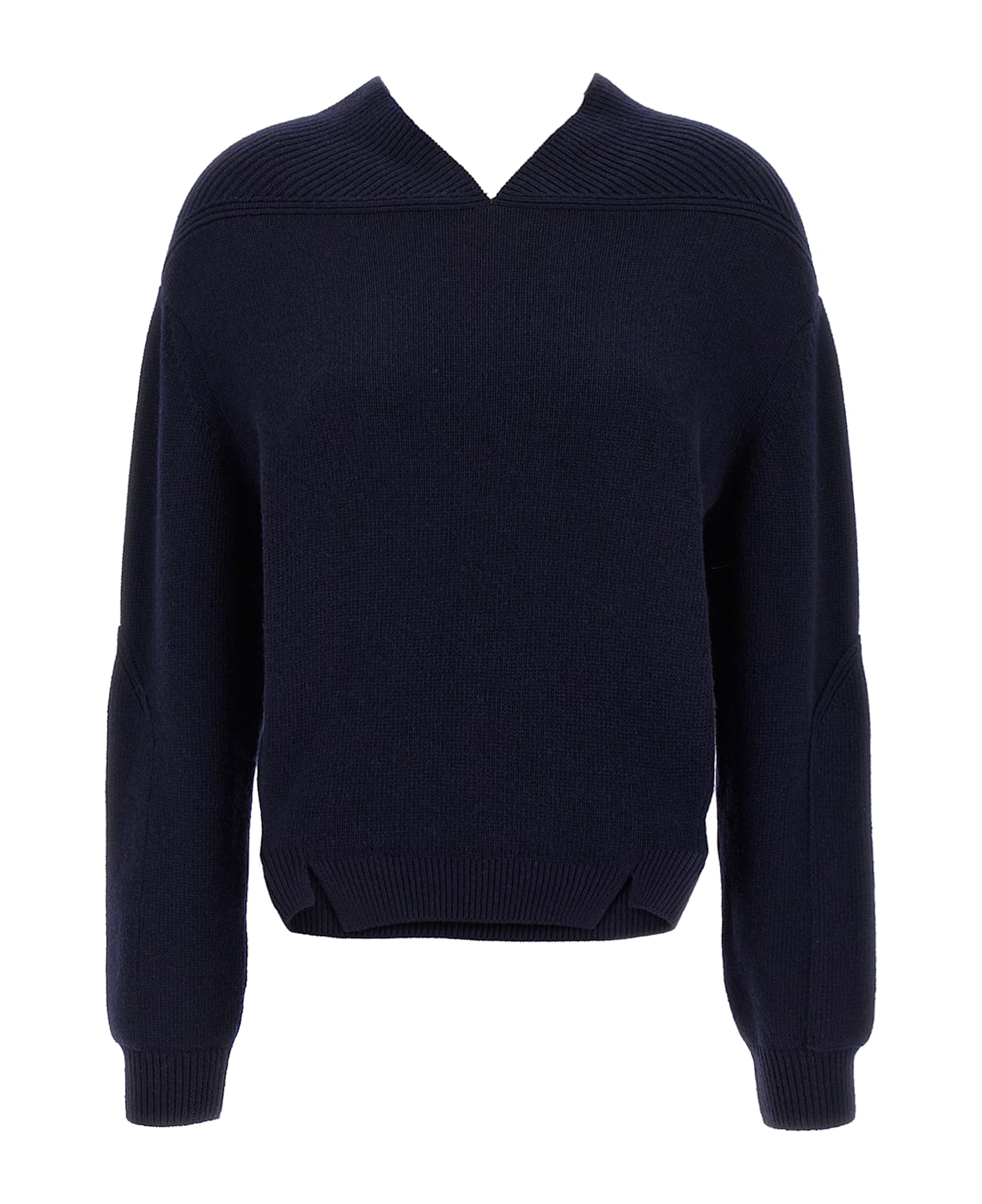 'V-neck Yoke detail' cashmere blend sweater with V-neck, side splits, back embroidery with logo, long sleeves with cuffs. Composition: 70% wo, 30% ws