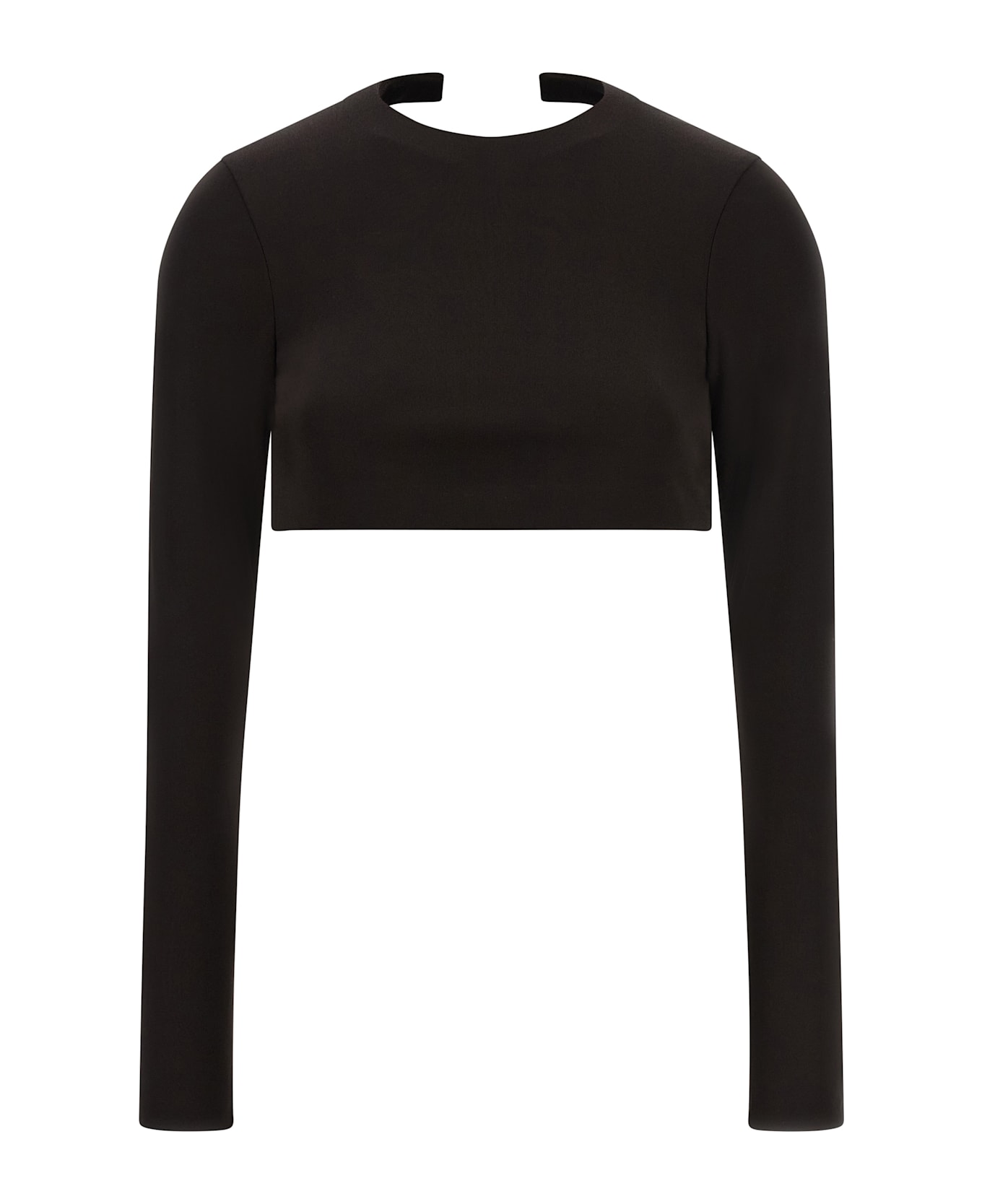 'Impossible' crop top in crepe jersey, crew neck, completely bare back, rigid three-dimensional structural detail at the neck and on the hem, long sleeves. Composition: 100% viscose
