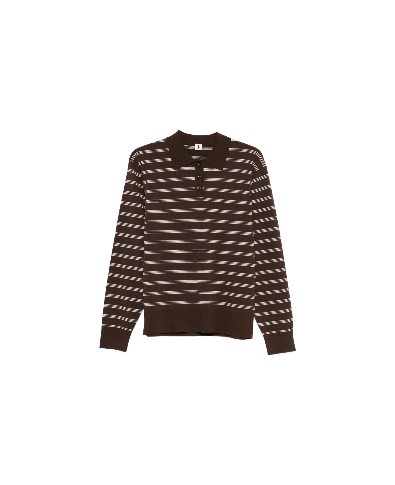 dark brown striped button fastening long sleeves polo collar tonal logo detail