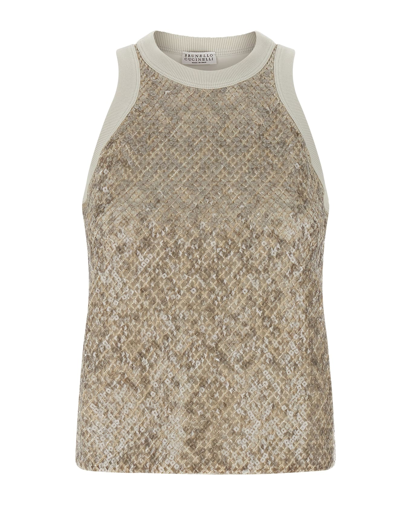 Cotton top with front fully embroidered in sequins and wool. Composition: 93% cotton, 7% elastane