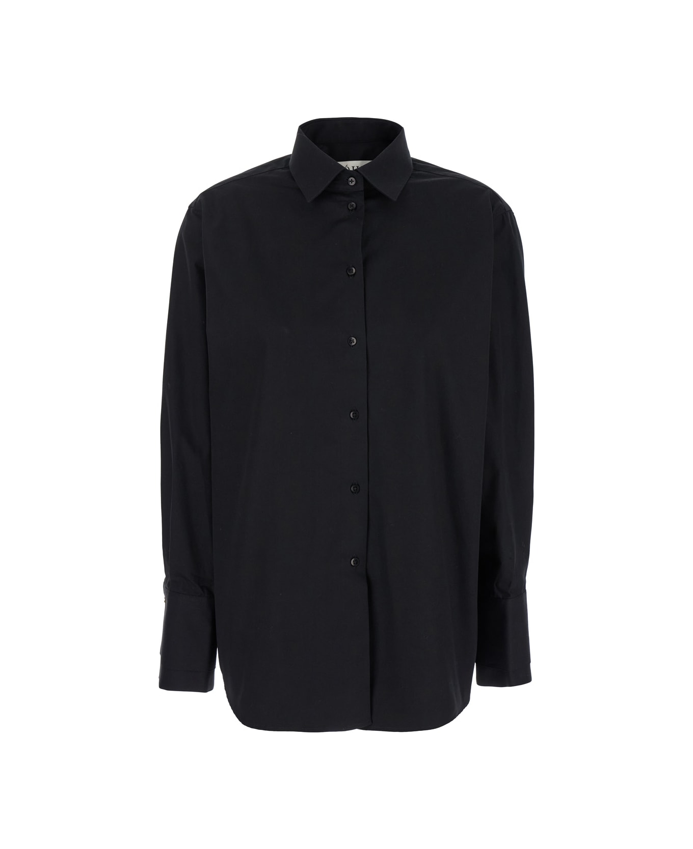 Black Double Cuff Shirt With Gold Colored Details In Cotton Woman