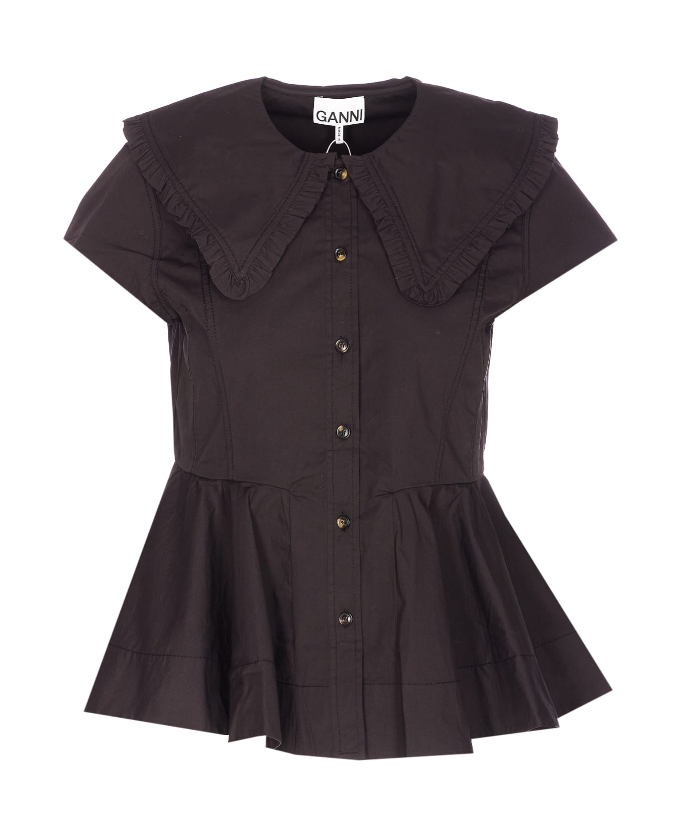 Ganni black Oxford shirt with frontal buttons closure, sleeveless, collar Composition: 97% Organic Cotton, 3% Elastane