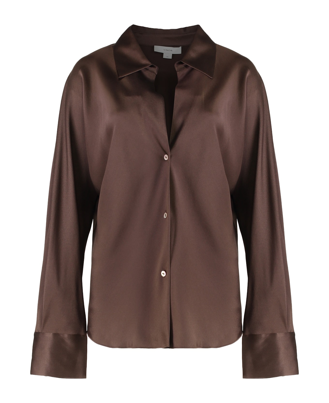 Model with elegant design in a satin fabric. the front closure with buttons and the classic collar add traditional details to a contemporary look. the long sleeves, with buttoned cuffs, provide comfort and style.