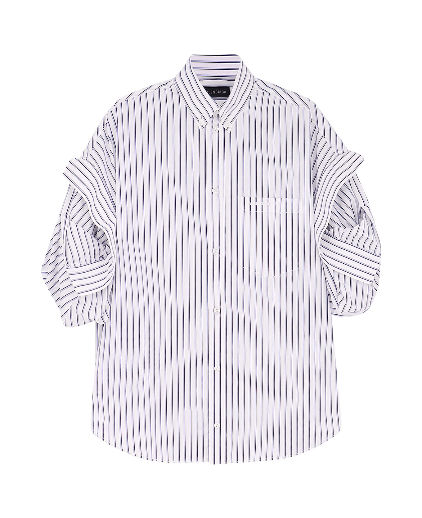 Button closure Buttoned-down Breast pocket with Balenciaga embroidery Tucked sleeve Oversize Made in Italy 100% cotton SKU: 857833TTM339086