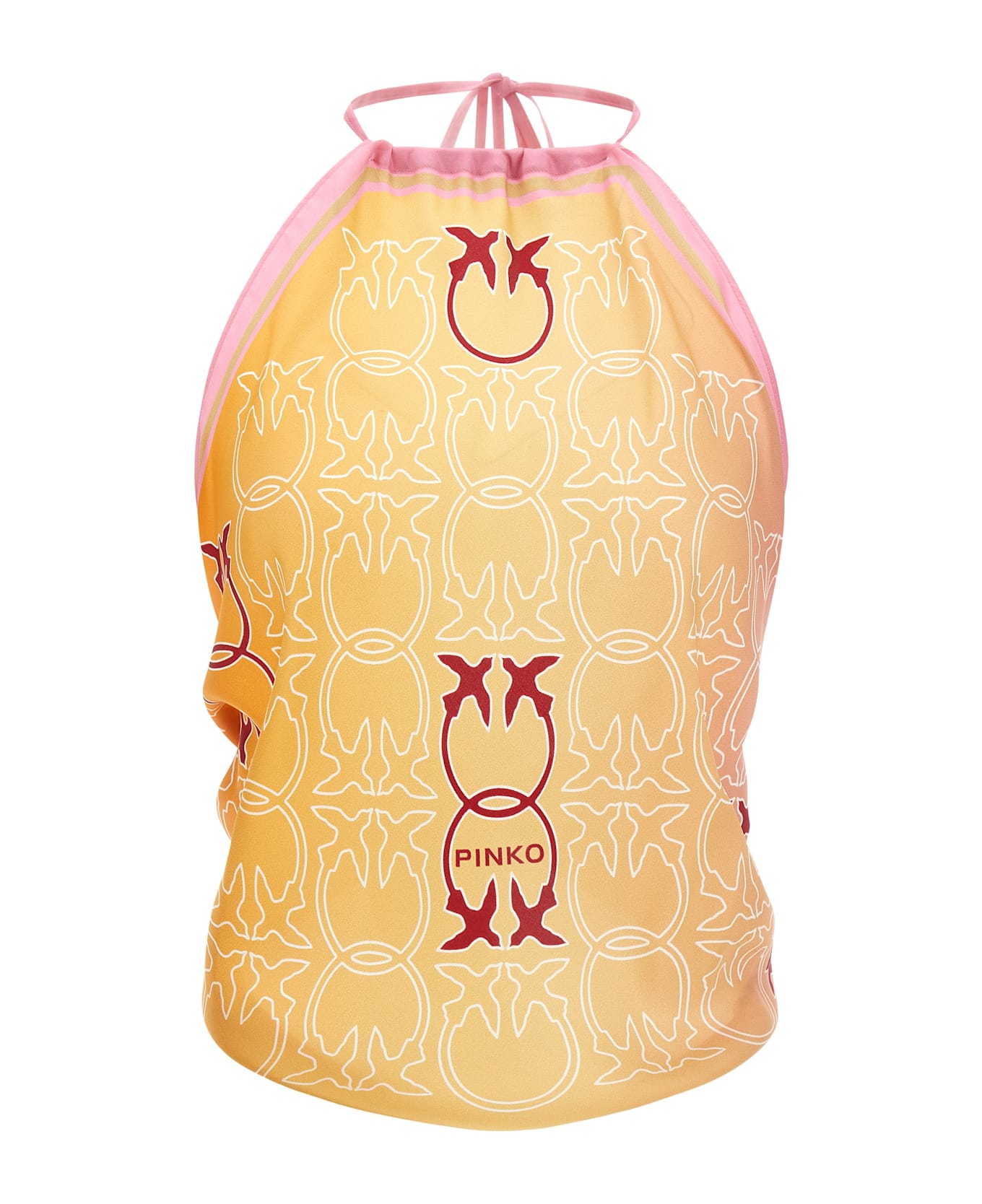 'Synchro' top in viscose and silk twill with monogram print, lacing at the neck, to be tied in the back, bare back, asymmetrical hem. Composition: 65% viscose, 35% silk