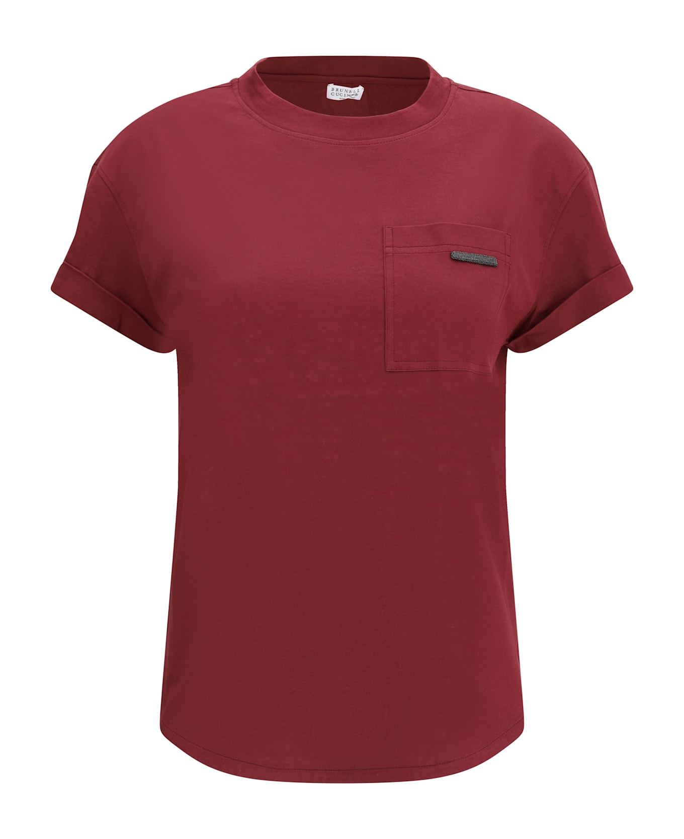 Brunello cucinelli's cotton t-shirt is an essential garment enriched with precious details. featuring a ribbed crew neck and cuffed sleeves, it has an asymmetrical hemline that lends movement to the silhouette. the pocket on the front is embellished with the characteristic detail of shiny jewels, a discreet and refined signature of the house's unmistakable style. Composition: 100% % Cotton