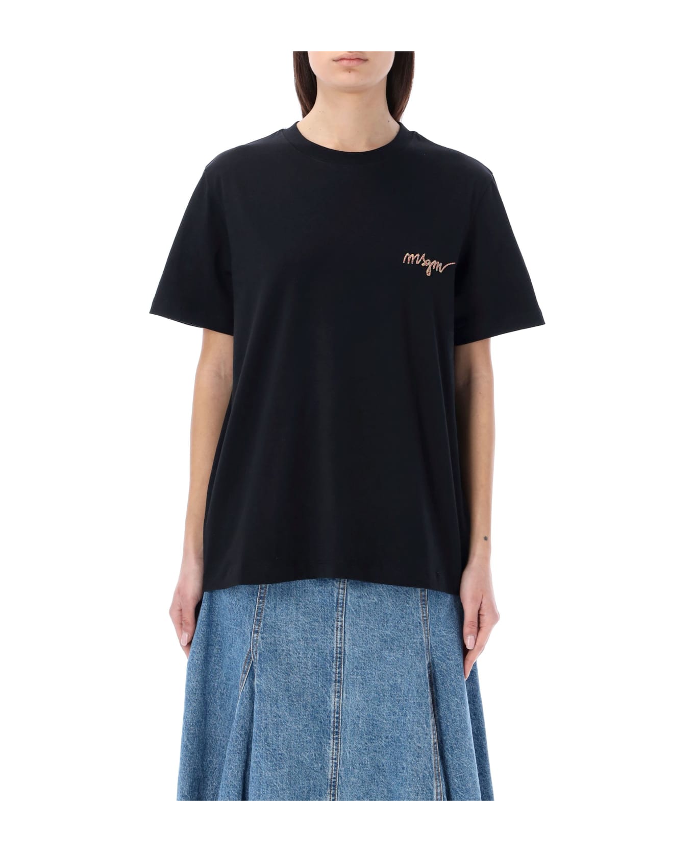 Cotton Embroidered Italic Logo T-shirt By Msgm. Featuring: