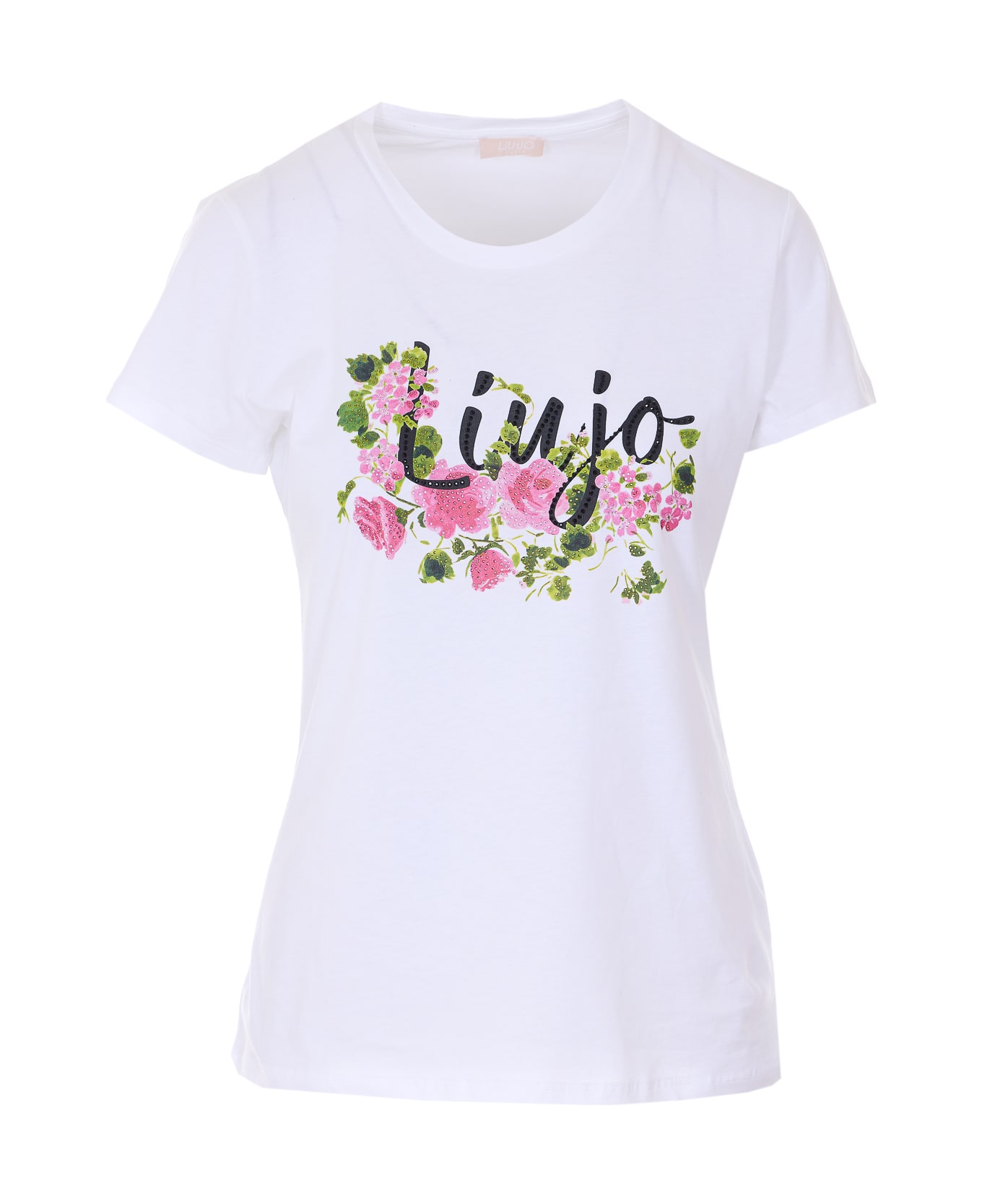 Liu Jo white t-shirt, crewneck, print on the front and strass details