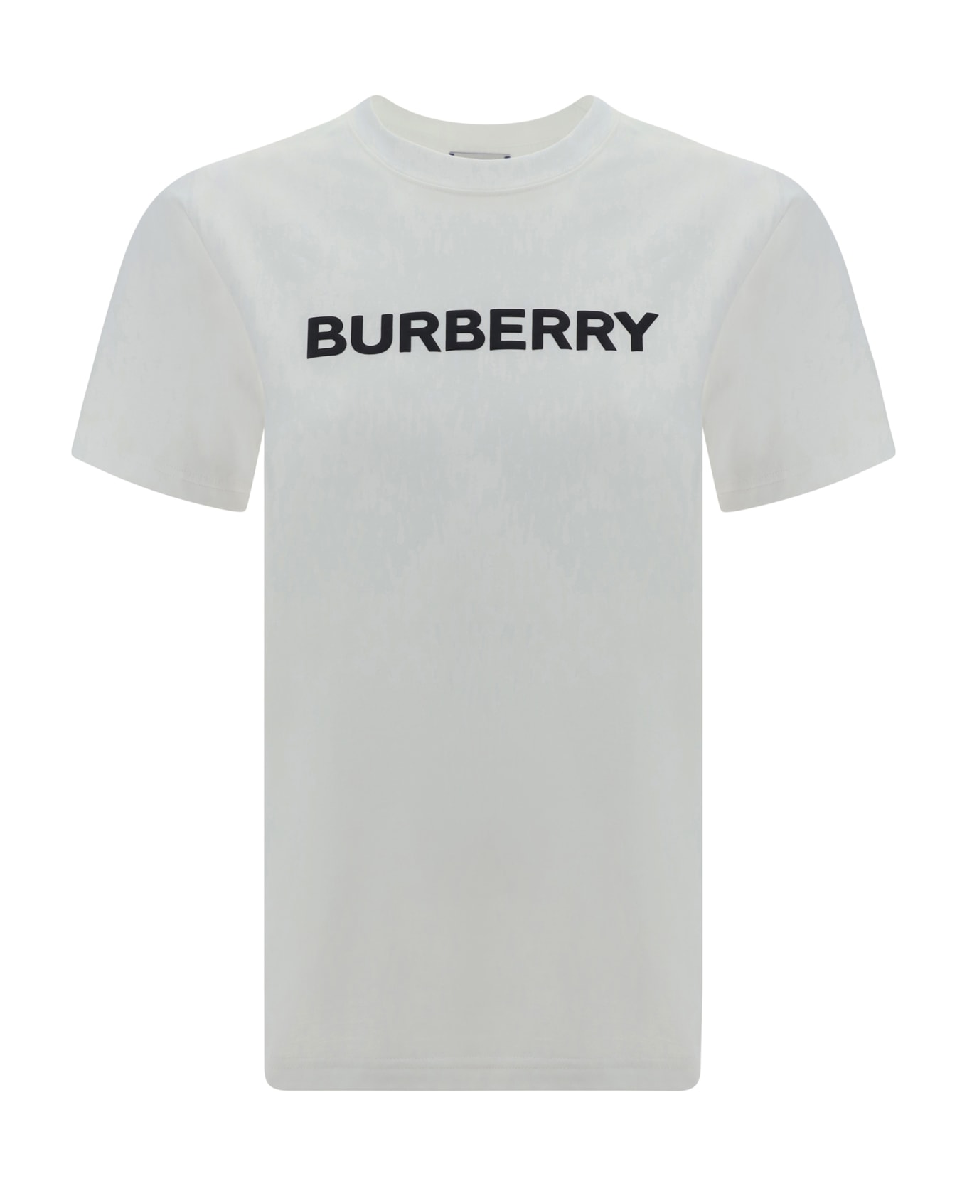 Cotton t-shirt by burberry, ribbed crew neck, contrasting iconic brand monogram on front, monochrome pattern, regular fit. Composition: 100% % Cotton
