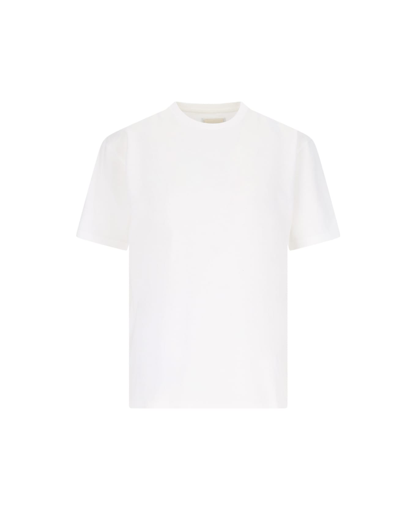 Khaite 'The Mae' T-Shirt, white color, cotton, round neckline, short sleeves, back lettering logo patch, straight hem.
