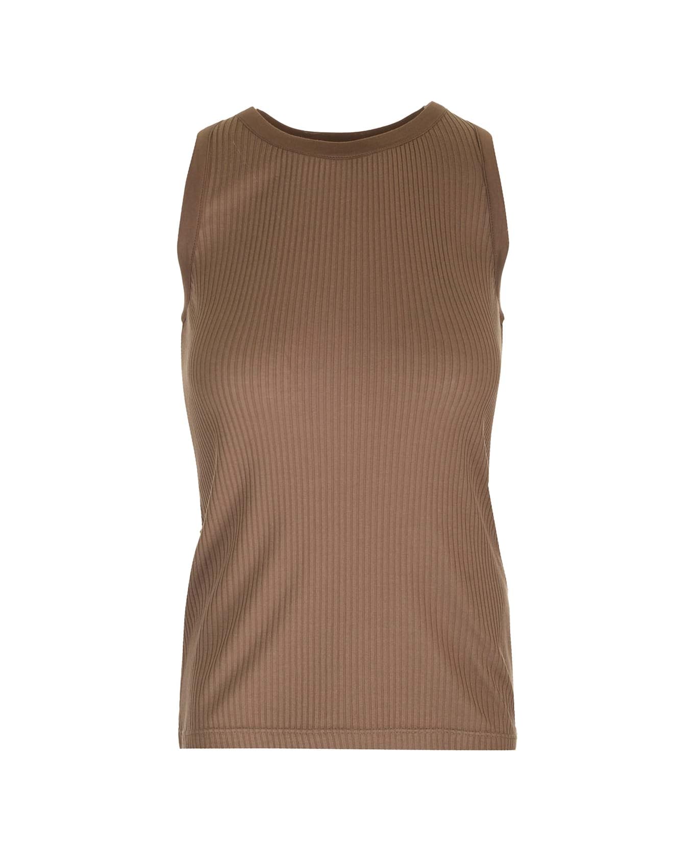 Brown ribbed silk jersey top with halter neck and tight fit by Ferragamo. Composition: 50%se-50%rayon 50%se-50%rayon datails. .