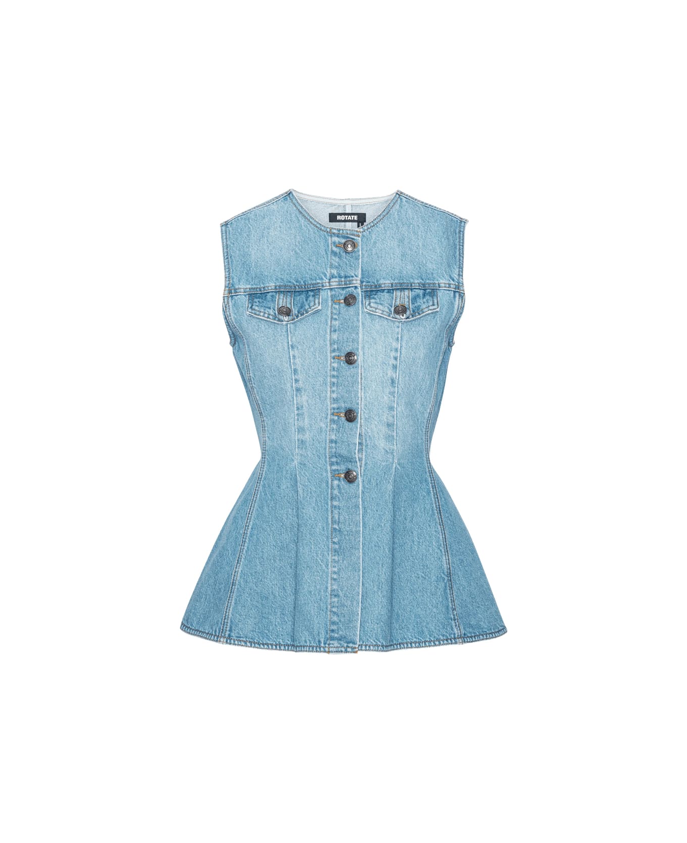 light blue flap pockets front button-fastening sleeveless round neck flared hem