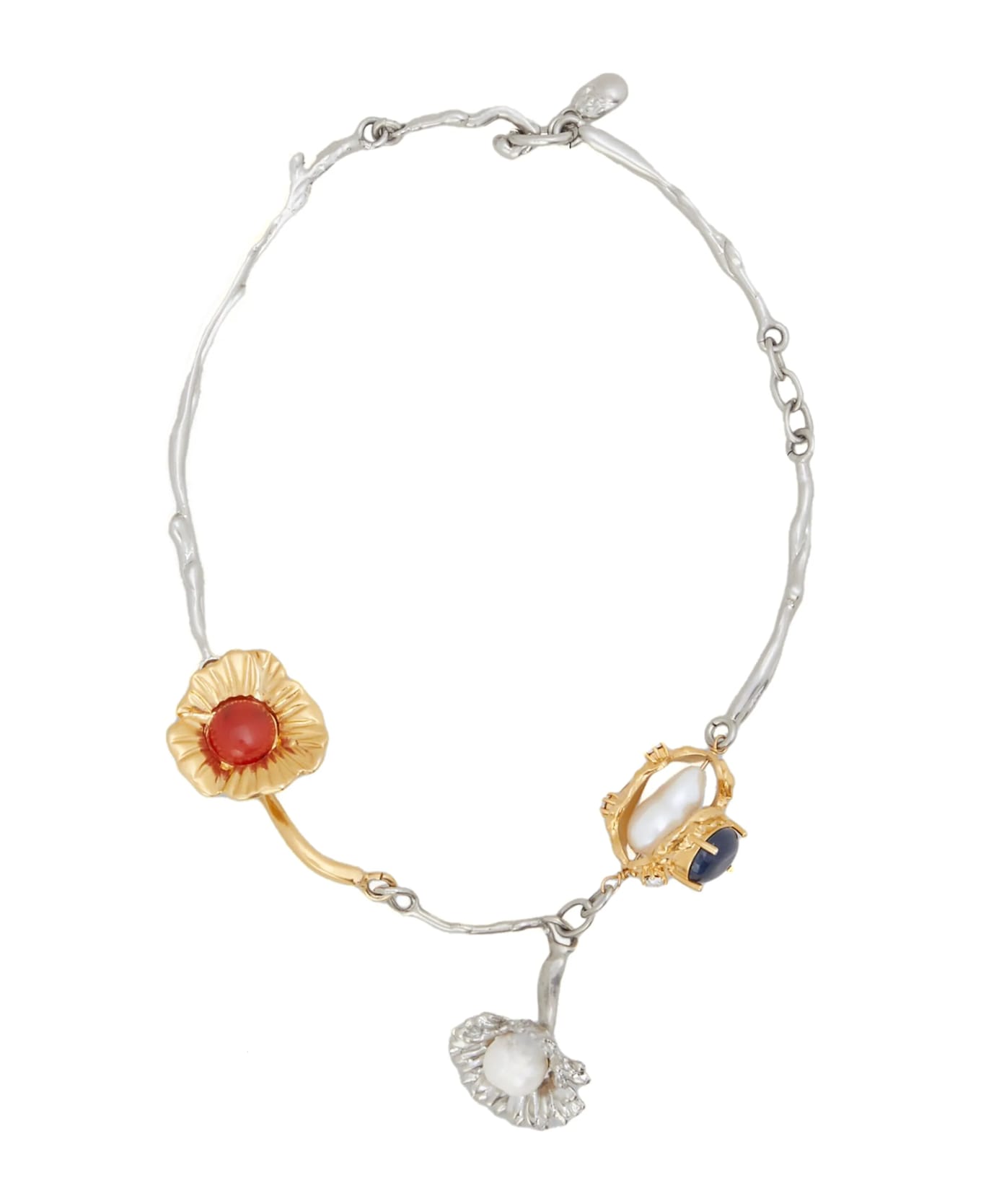 'Flower Delirium' metal necklace, charms with contrast finishes, pearls and embedded stones, clasp closure. Composition: 85% brass 10% pearl 5% zircon