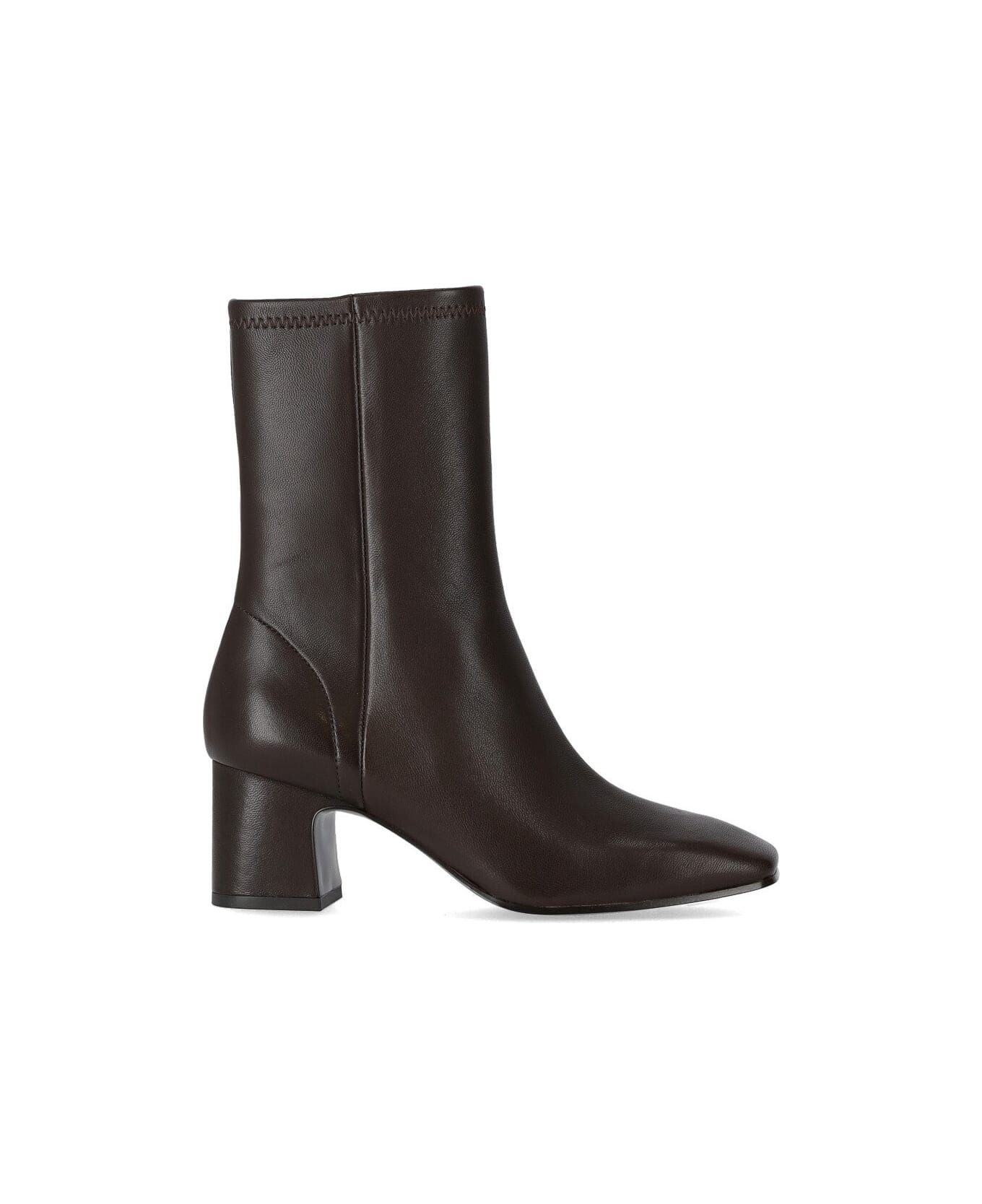 Ash Cindy heeled ankle boot made of ebony leather with suede effect interior and leather insole. Square toe, side zip closure and leather sole. Heel height 5. 5 cm.