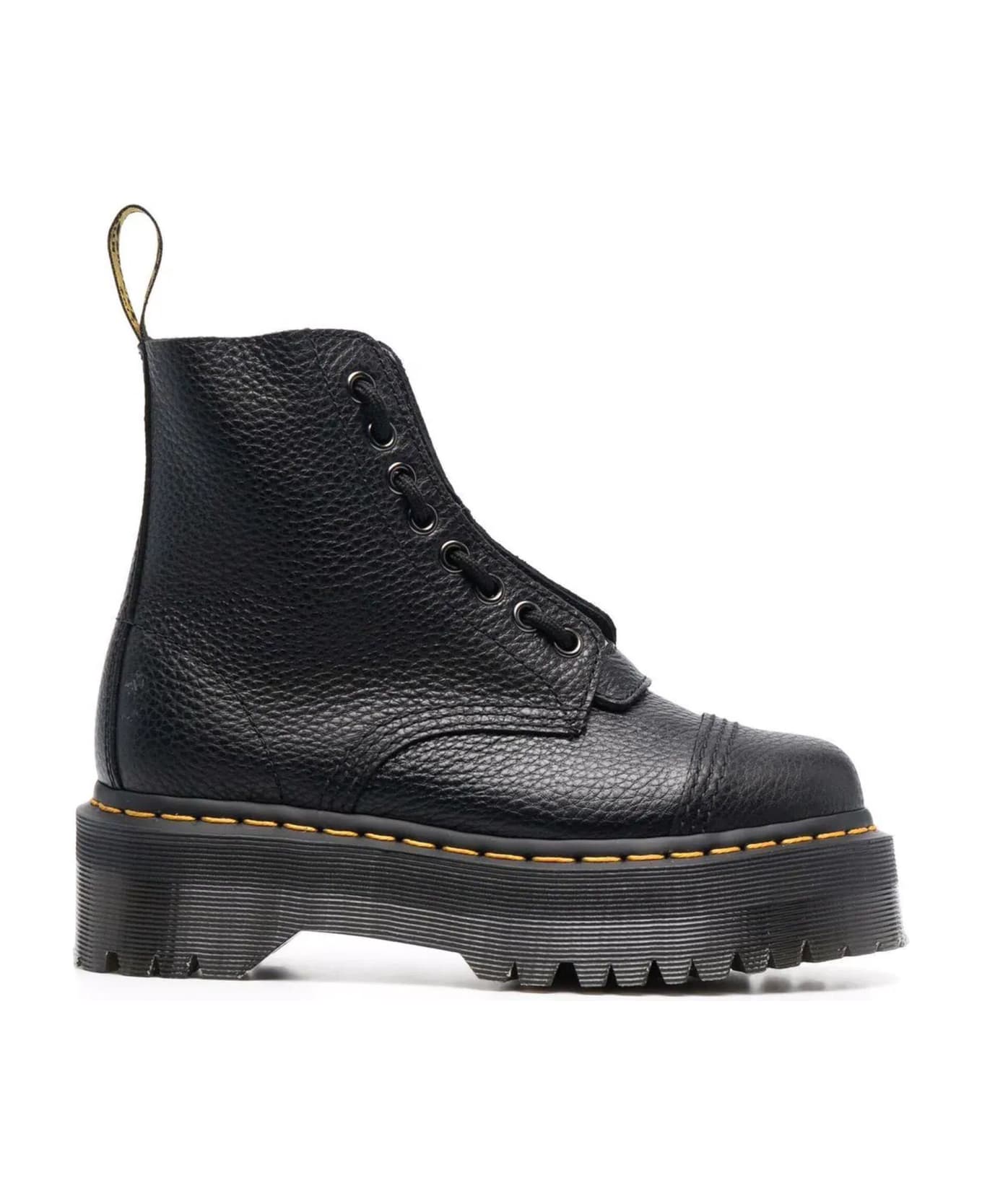 Black leather Sinclair leather platform boots featuring lace-up detailing, logo pull-tab at the heel, round toe, front zip fastening and ridged rubber sole. Composition: Leather, 100%