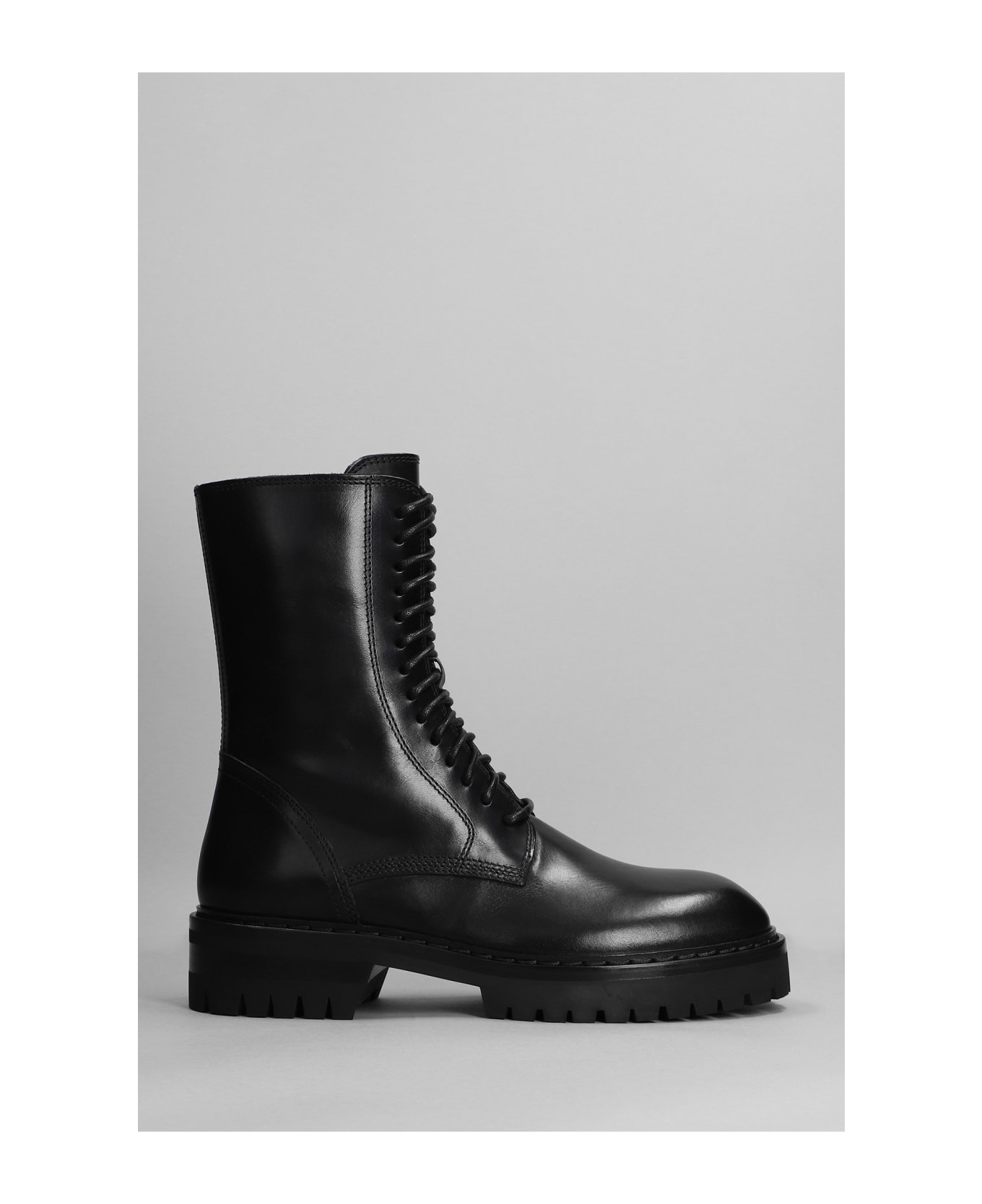 Combat boots in black leather, almond toe, laces, side zip closure, 50 mm heel, 100% leather, Made in Italy