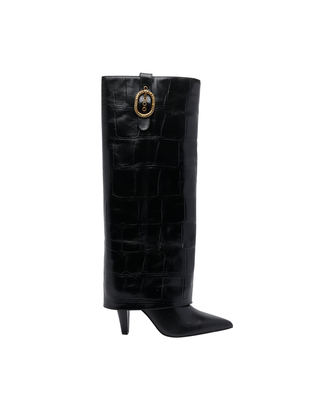 Kurt Geiger black Fold Over pump booties, crocodile print, toe, eu size, buckle detail, leather upper