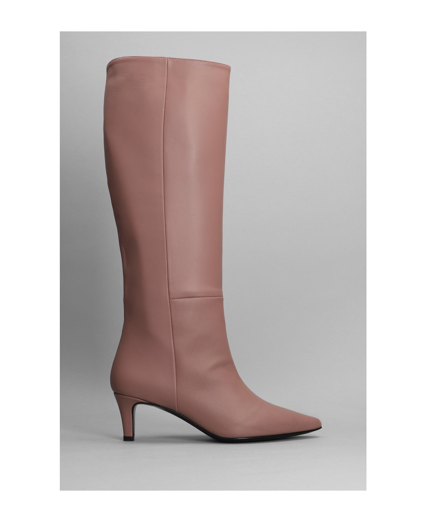 Oregon High heels boots in rose-pink leather, straight leg, pointed toe, 60 mm heel, 100% leather, Made in Italy, leather sole