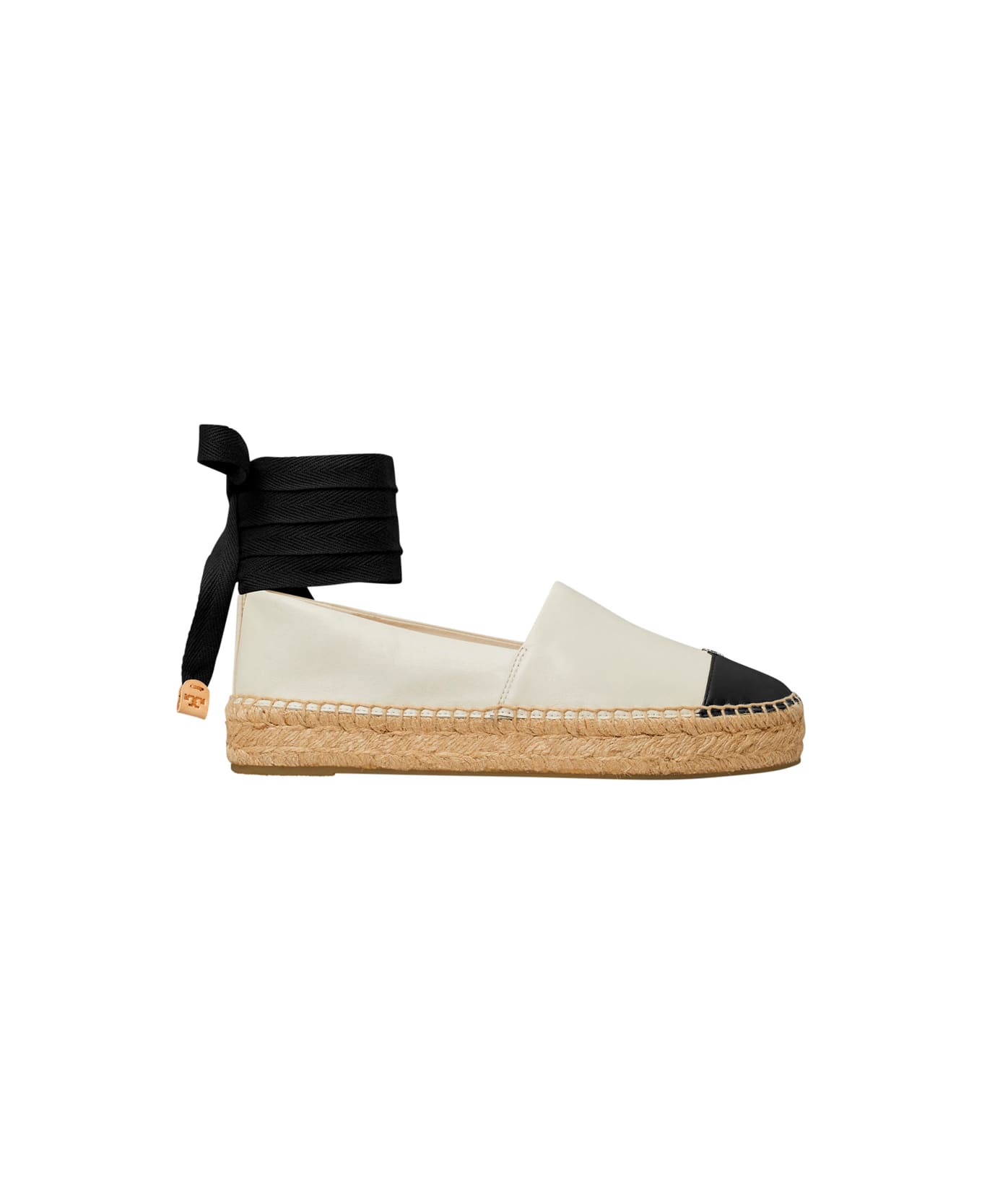 Espadrilles White Black round toe Logo plaque on the front Ankle strap Logo pendant on the back Jute and rubber sole Leather