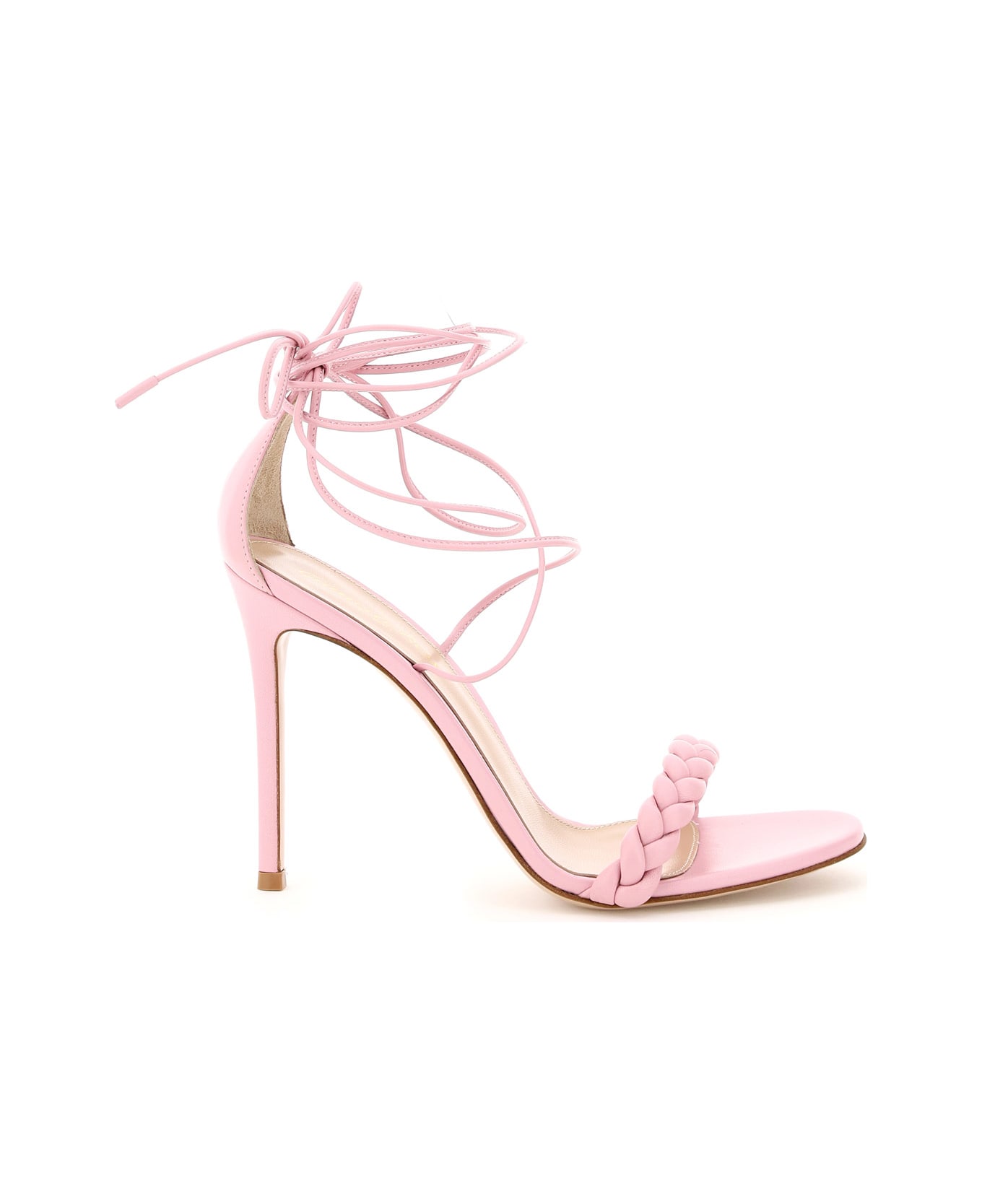 Gianvito Rossi Leomi sandals in soft nappa, featuring braided strap and thin ankle laces. Leather-covered heel, leather lining, leather sole.