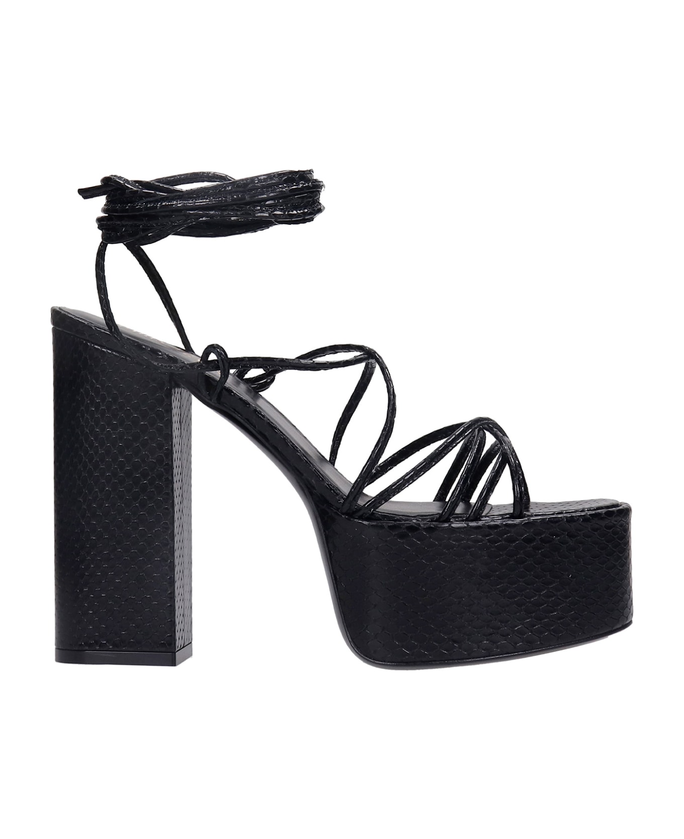 Malena Sandals in black leather, multiple thin straps, snake print, lace up, plateau, 150 mm heel, 100% leather, Made in Italy Composition: Leather