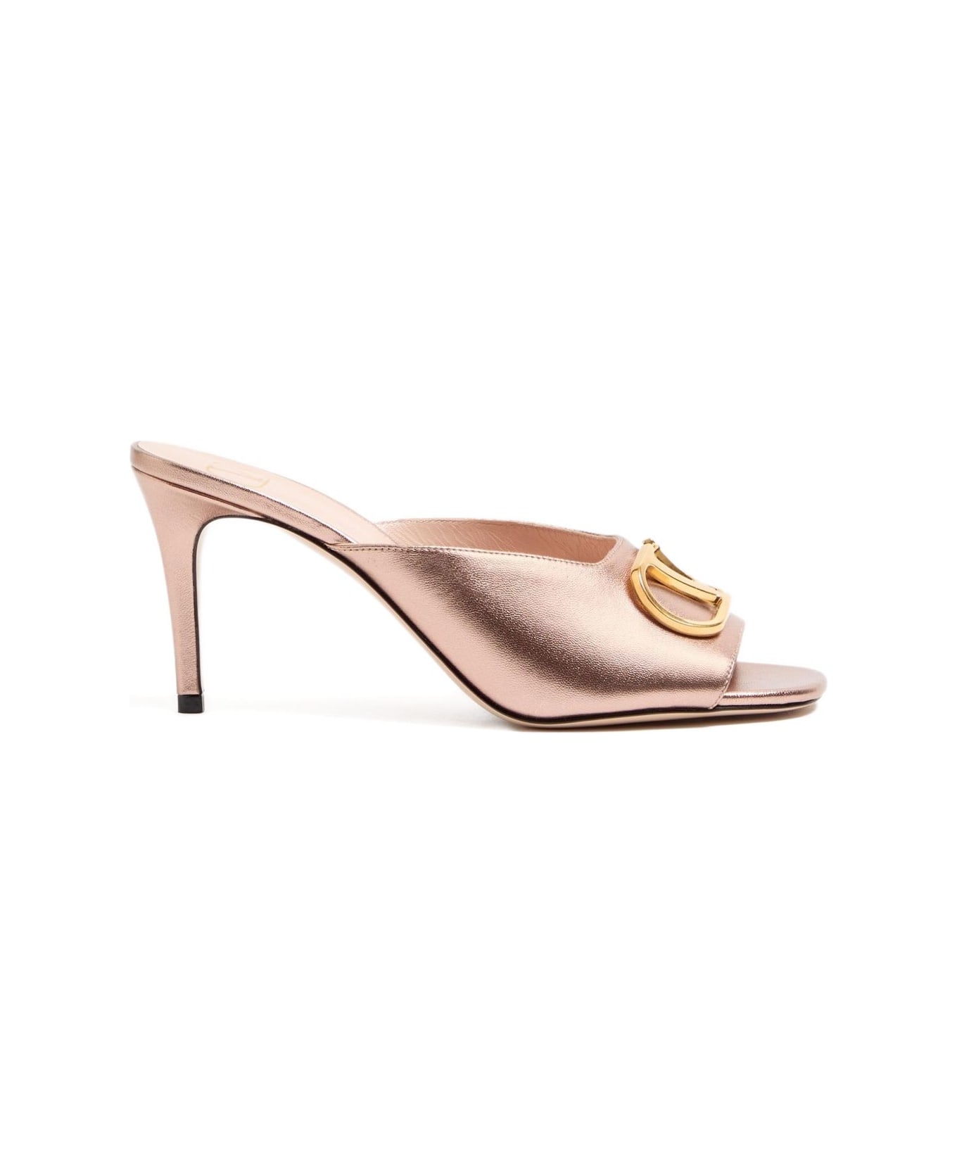 Valentino sandals pink Vlogo Signature gold-tone hardware open toe slip-on style The full look includes Valentino Garavani accessories. Composition: Calf Leather, 100%