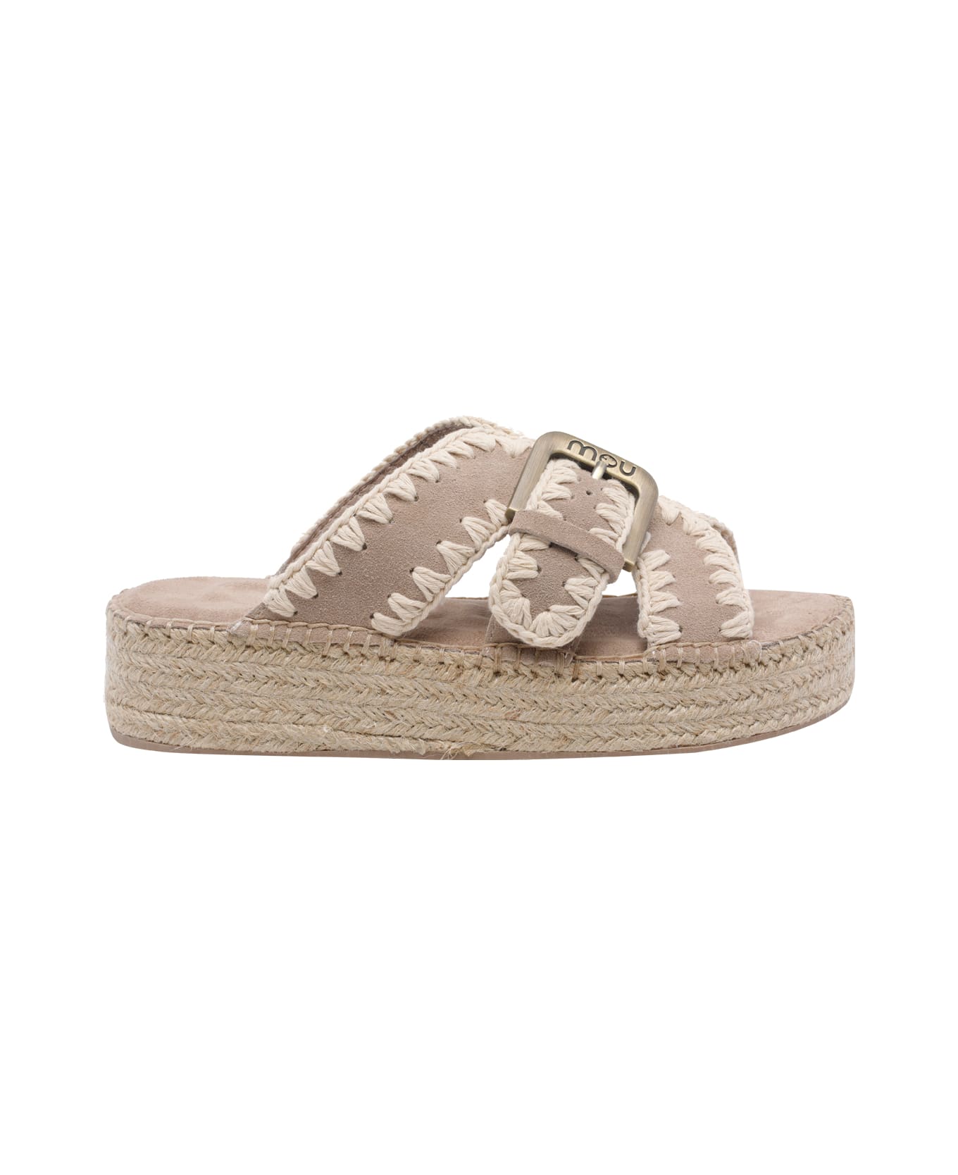Mou pink Jute sandals, round toe, lateral buckle closure with logo