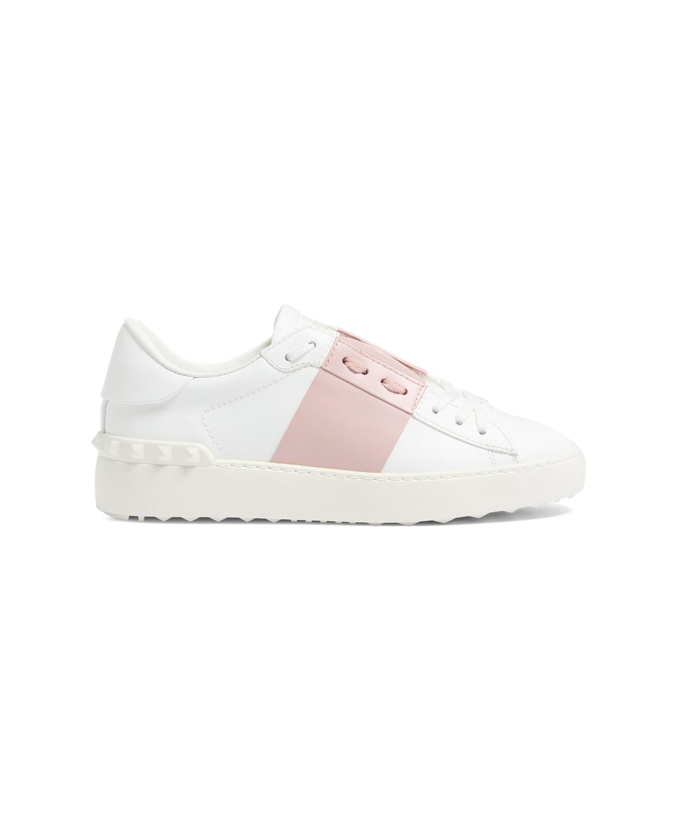 white and pink leather signature Rockstud detailing panelled design logo-print tongue round toe front lace-up fastening branded insole rubber sole Composition: Calf Leather, 100%