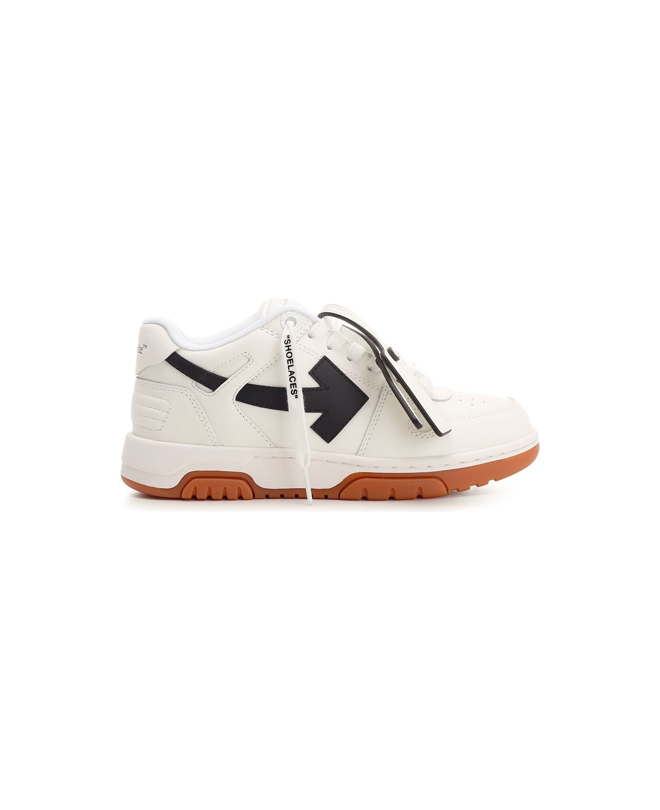 "Out of Office" sneakers by Off-White in ivory leather, with black arrow, perforated toe, removable "zip tie" detail symbol of the brand. Composition: 100% leather