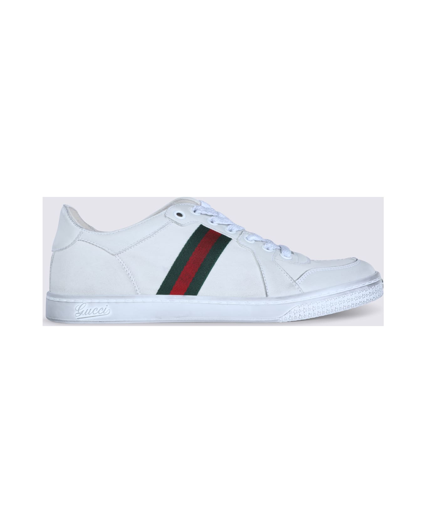 White leather sneakers from Gucci featuring round toe, laces fastening, lateral logo detail and back lettering logo.