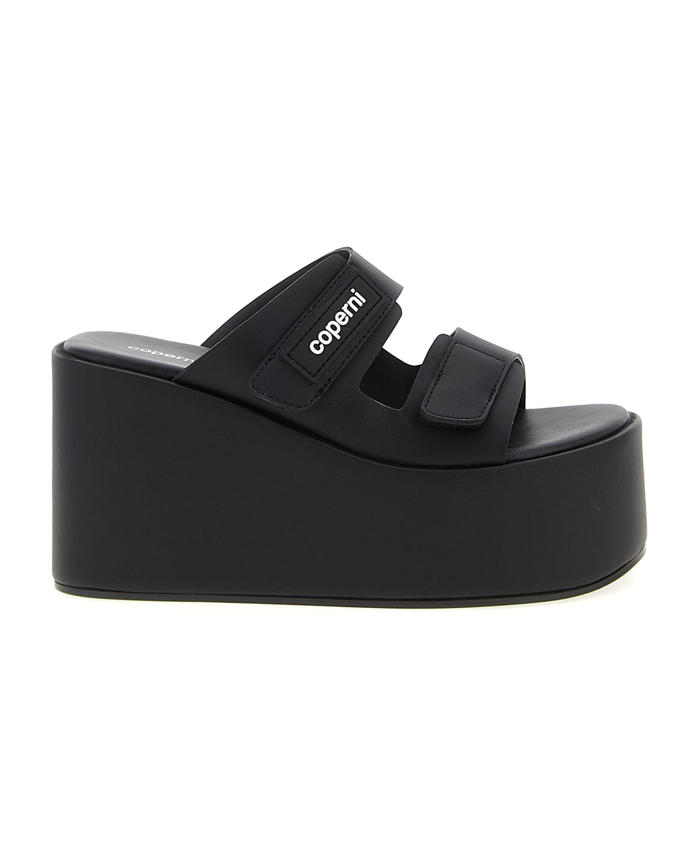 'Patch Wedge Sandal' wedges in leather-effect fabric with adjustable straps with Velcro, front logo patch, rubber sole.
