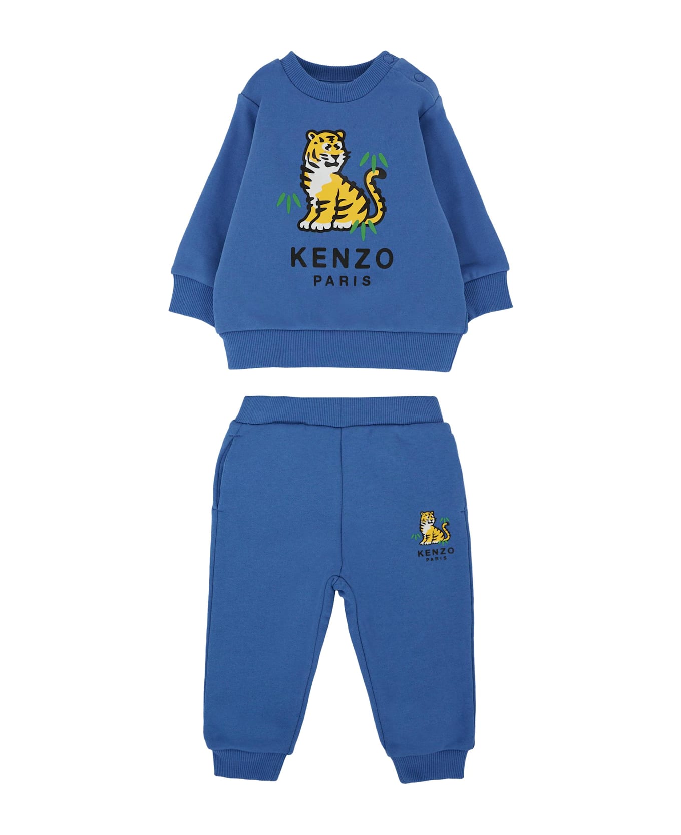Blue cotton gauzed suit, composed of sweatshirt and trousers. Long-sleeved sweatshirt, with ribbed crew neck, cuffs and hem and snap button fastening on the shoulder; trousers with elasticated waist and ribbed ankles. It is embellished with the iconic Kotora tiger and logo printed on the front.