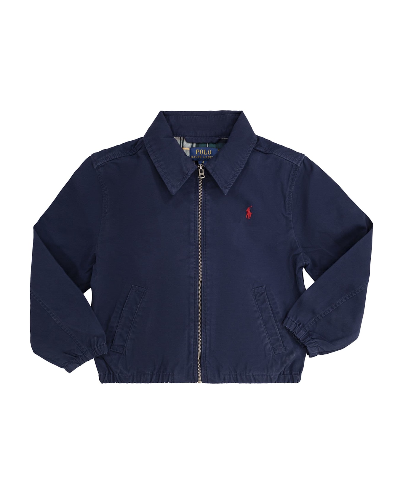 This cotton jacket has been washed for comfort and features a back yoke lined with twill in a plaid pattern. - Exclusive embroidered pony on the left chest side - Pointed collar - Zip fastening - Long sleeves with elasticated cuffs - Two bias pockets on the front - Elasticated hem - Exclusive label on the inside - Back yoke lined with twill in a plaid pattern DESIGNER ID: 322934661 002