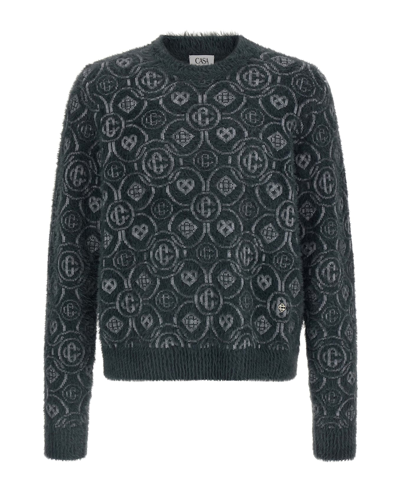 Fluffy Monogram' fluffy-effect wool blend sweater with all-over jacquard monogram, crewneck, long cuffed sleeves and dropped shoulders. Composition: 50% wool, 50% polyamide