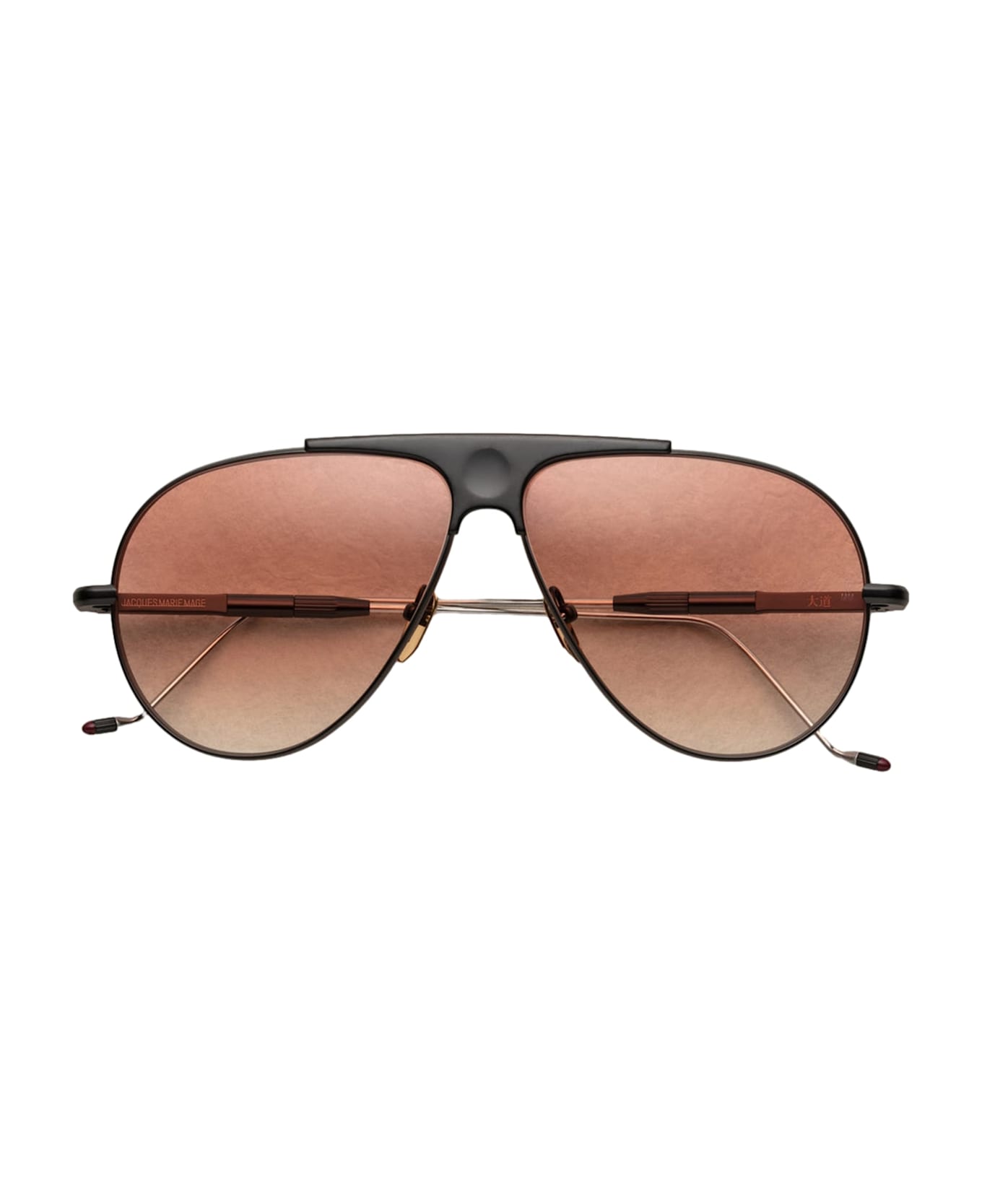 Jacques Marie Mage DAIDO - BLACK (JMMAO-88) are aviator sunglasses with teardrop lens, part of the KYOSHO Collection. They feature black 100% beta titanium frame, unique bridge with elegant circular depression, tension-secured custom monoblock, custom titanium nose pads, custom dark gold nose pads, silver extendable titanium temples with burgundy epoxy tips, apricot CR39 4 base lens with back-side anti-reflective treatment, and 100% UV protection.