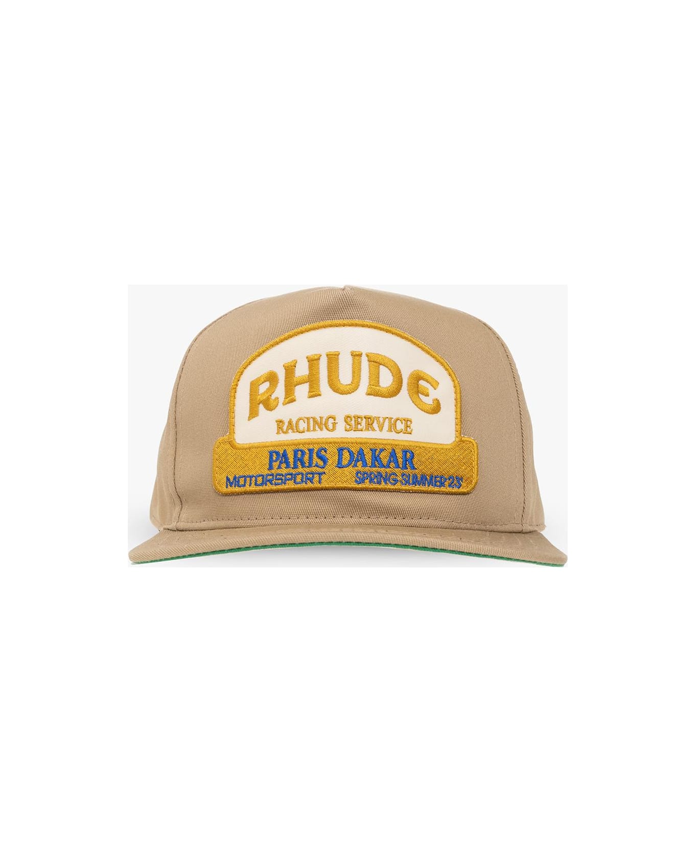 Beige baseball cap from Rhude. Made of cotton. Fastened with a snap at the back, this item is decorated with a logo patch.