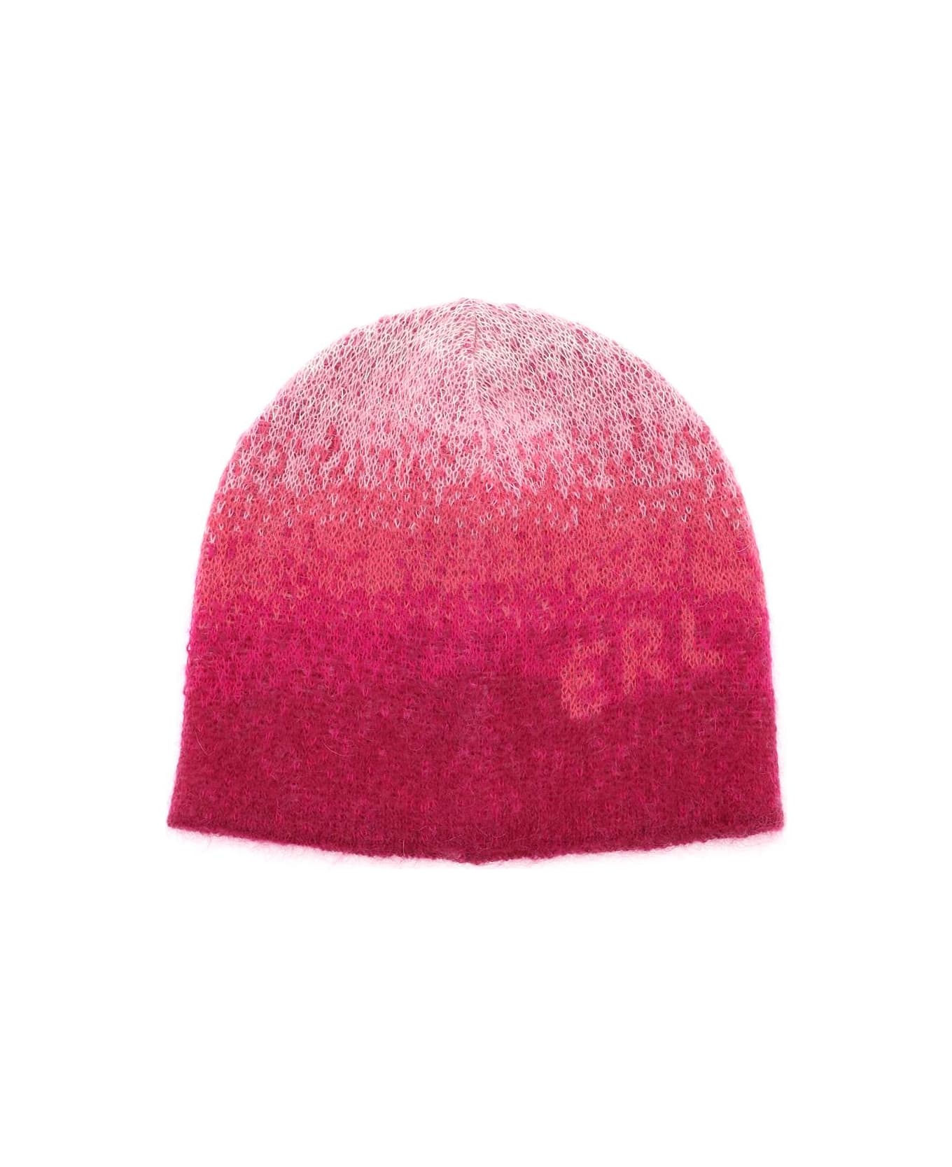 Erl beanie hat in soft brushed mohair-blend knit with jacquard gradient pattern and logo lettering. Only size.